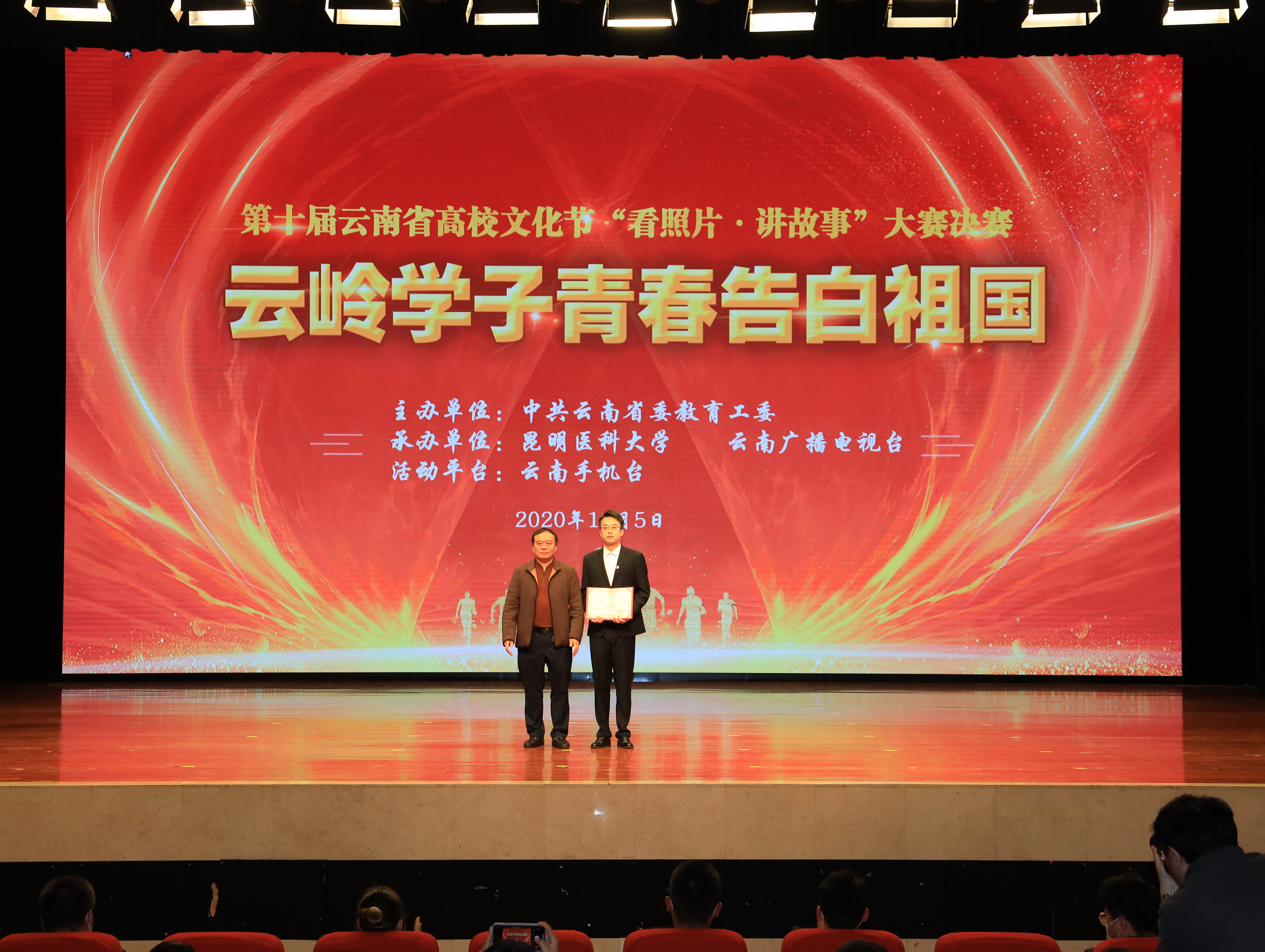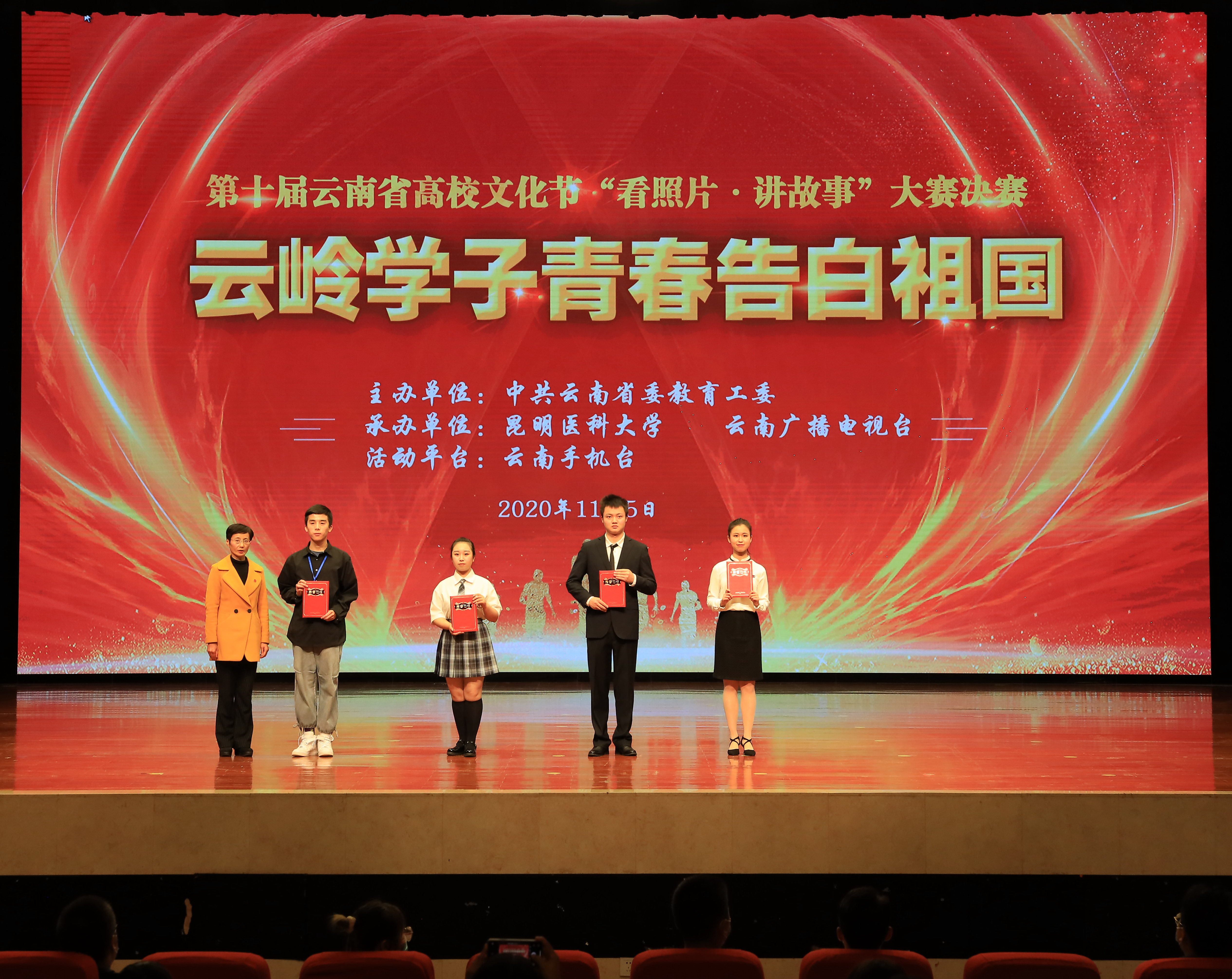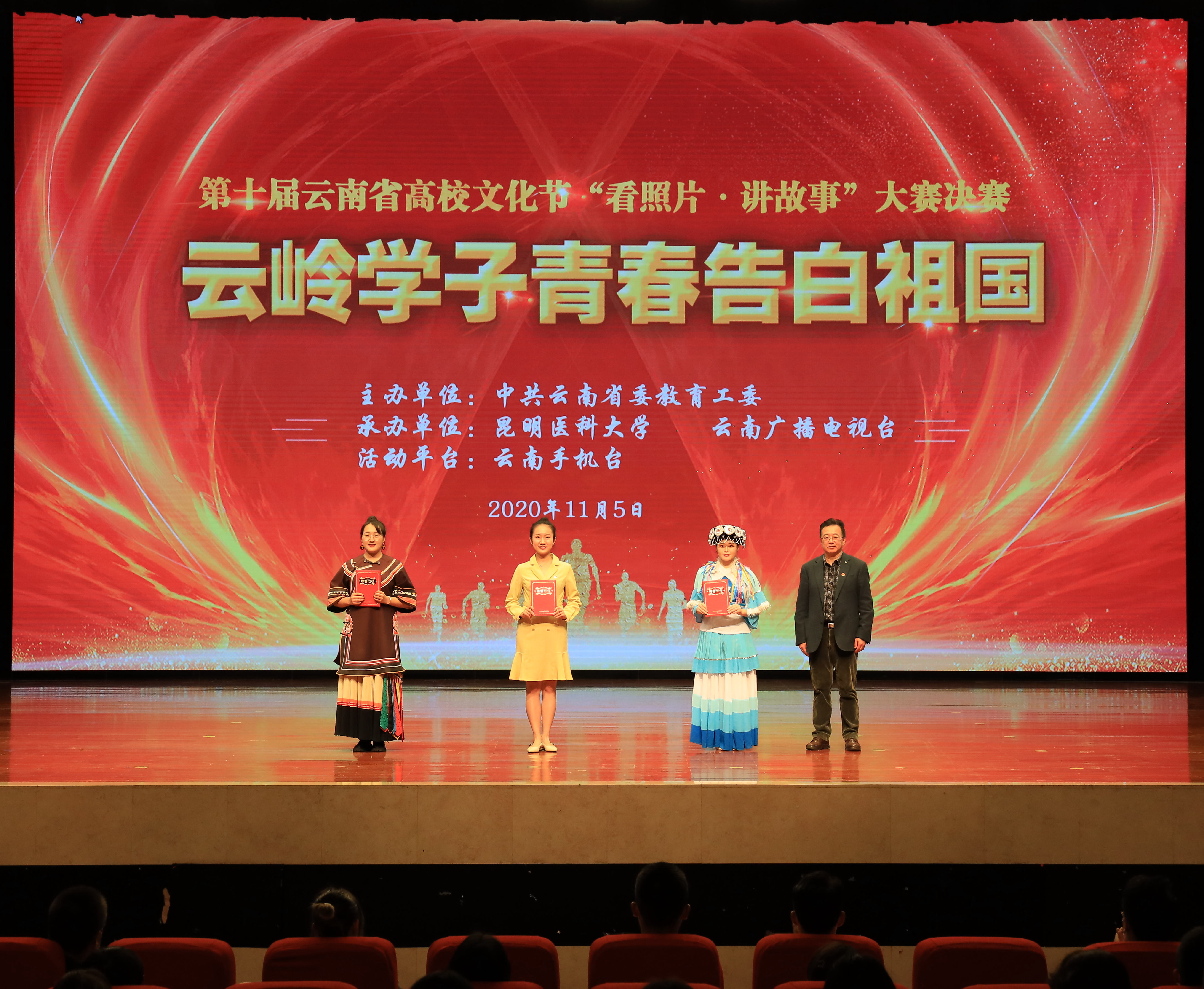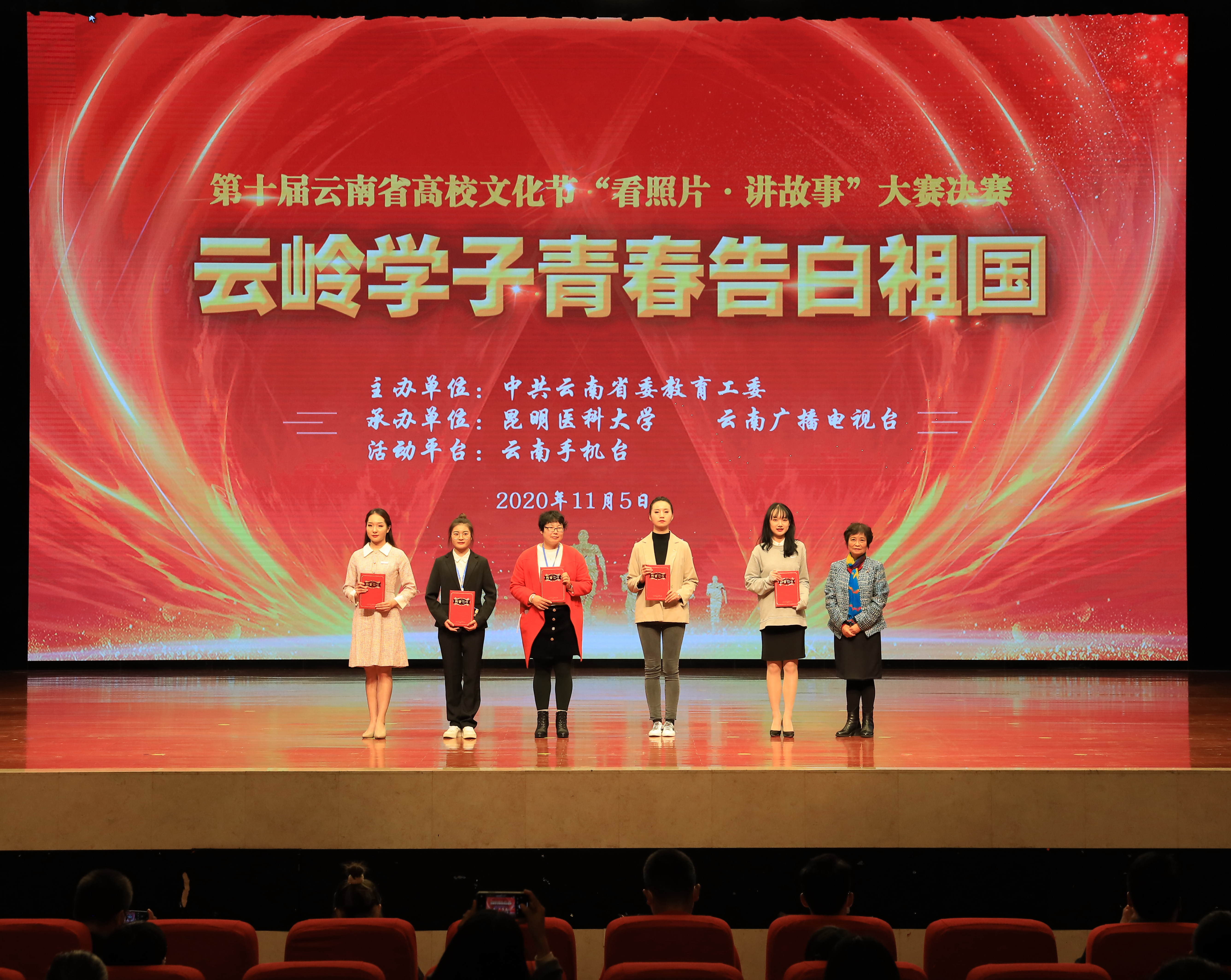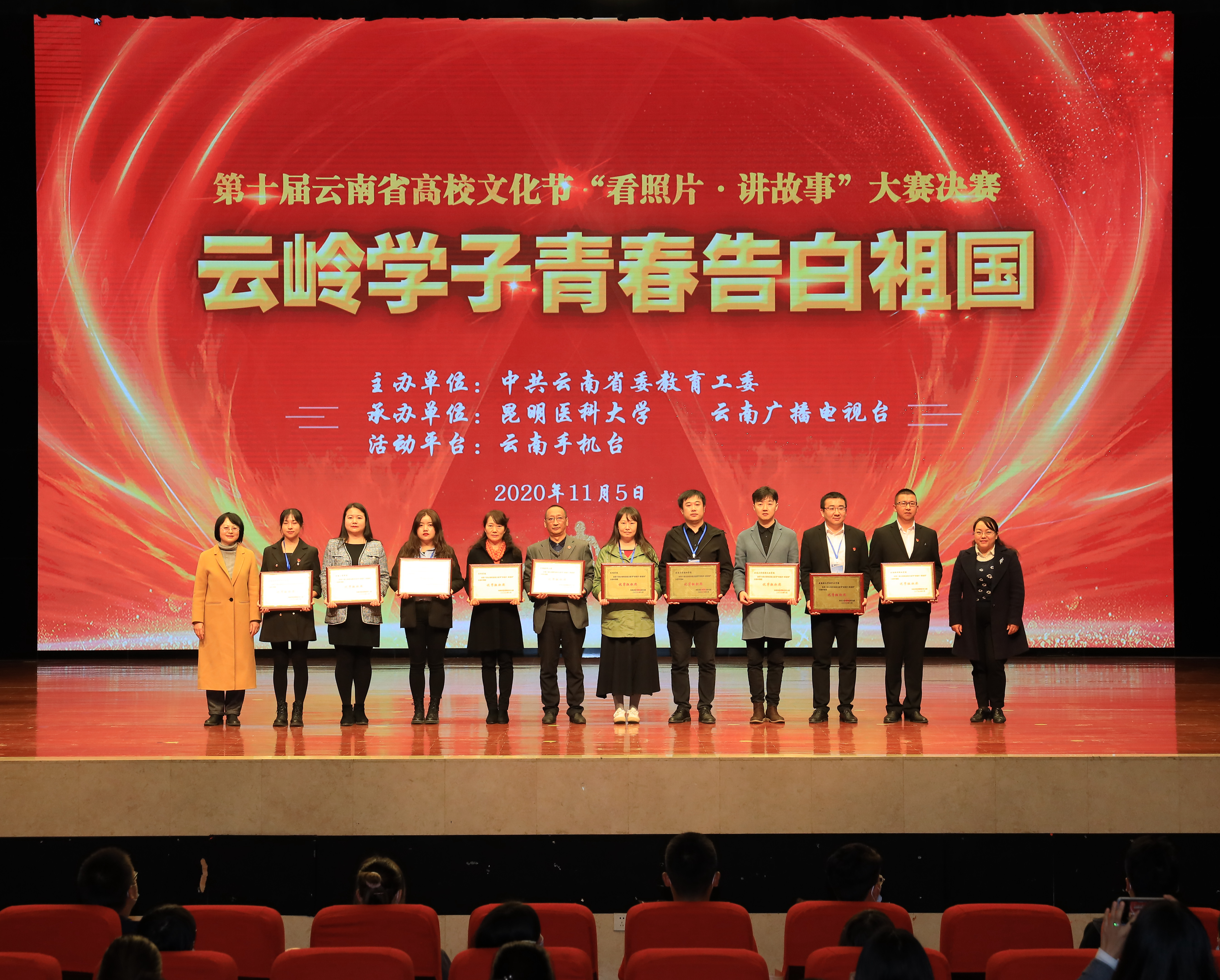 11月5日,第十届云南省高校文化节“看照片·讲故事” 大赛决赛在昆明医科大学呈贡校区举办。本次决赛由中共云南省委教育工委主办,昆明医科大学、云南广播电视台共同承办。云南省教育厅巡视员曾传虎,昆明医科大学党委副书记李铭,党委委员、副校长徐绍琼出席活动并颁奖,省委教育工委相关部门负责人,部分高校分管领导、学工部长和团委书记参加活动。