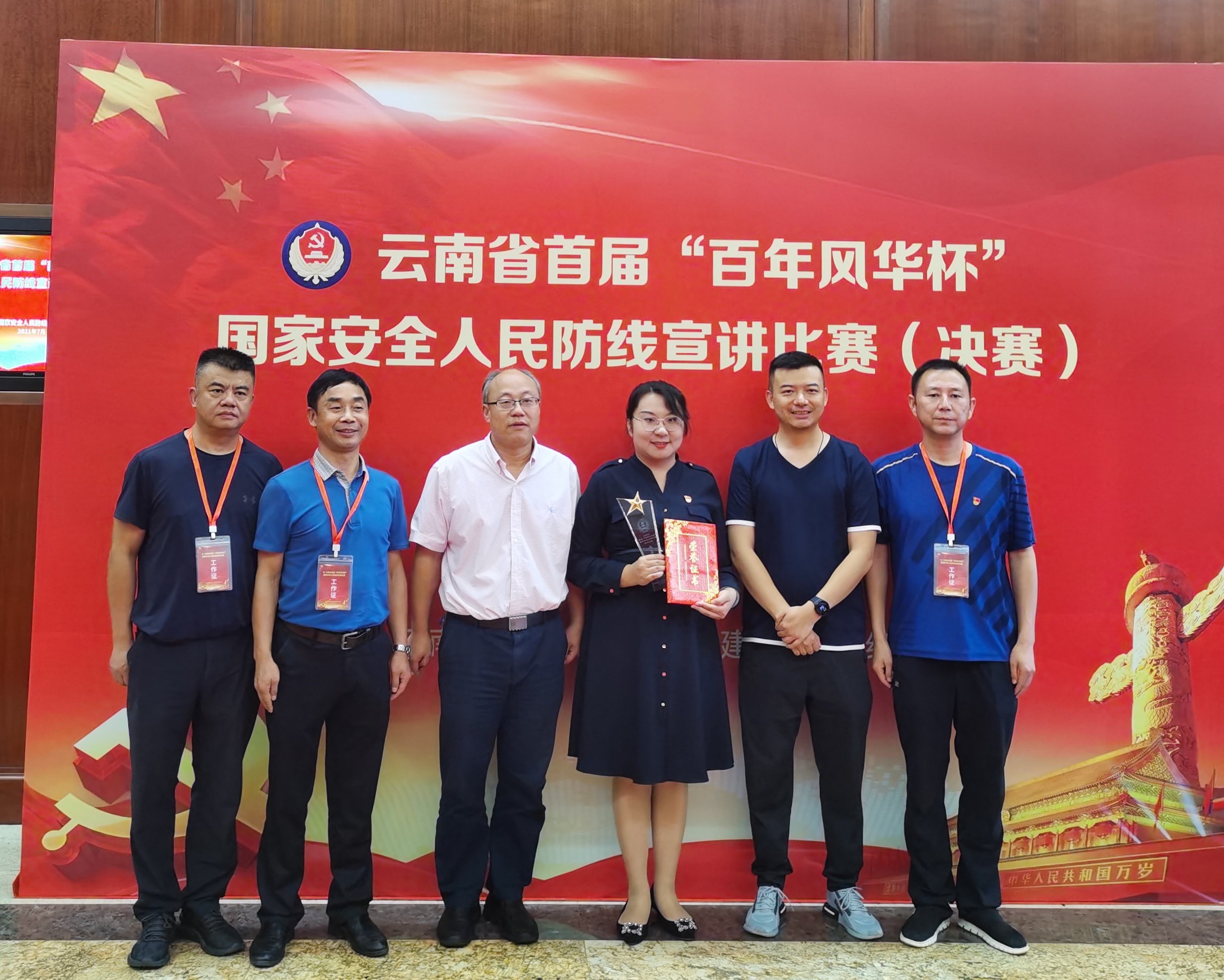 7月14日,由云南省政法委联合云南省国家安全厅主办的云南省首届“百年风华杯”国家安全人民防线宣讲决赛在海埂会堂举行。来自全省党政科研机关、军工单位、政法系统、人民团体、企事业等单位推送遴选的33名选手进入预赛,15人进决赛。我校马克思主义学院教师胡颖代表学校参加了此次宣讲比赛。胡颖以“一场没有硝烟的战争——国家意识形态安全由我守护”为题进行宣讲,主题鲜明、台风稳健,最终获得了第二名的优异成绩。