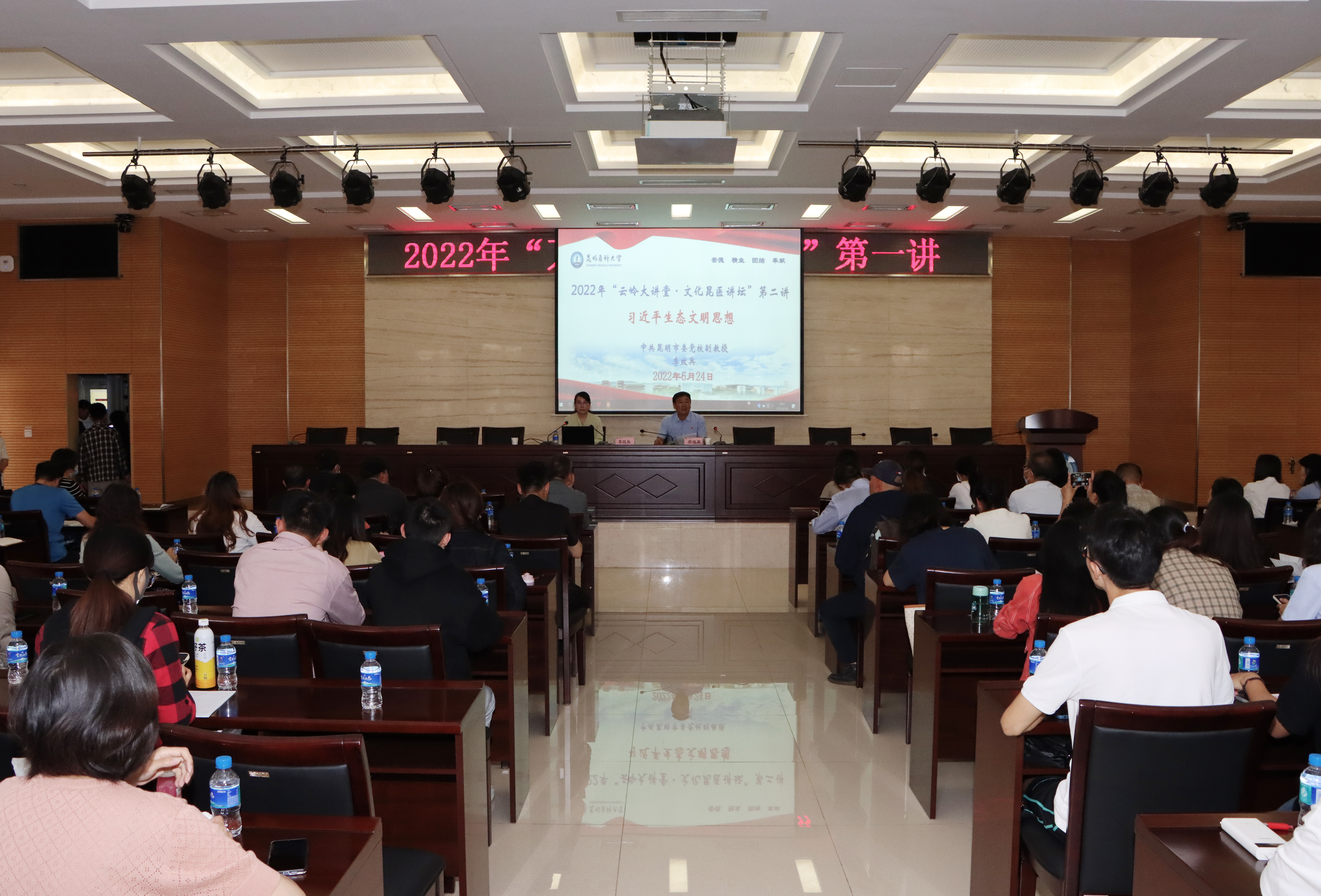 6月24日下午,昆明医科大学举办“云岭大讲堂·文化昆医讲坛”第二讲暨“万名党员进党校”专题报告第一讲,中共昆明市委党校社会和生态文明教研部博士、副教授李玟兵为师生作《习近平生态文明思想》专题报告。