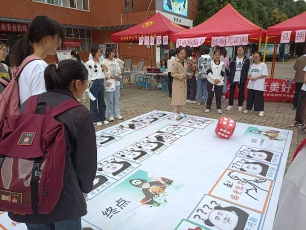 活动现场,通过设置禁毒展板、发放禁毒宣传册、悬挂宣传标语、摆放毒品仿真模型、开展禁毒知识有奖答题以及“禁毒大富翁”、“‘套’住毒品”等各种有趣的小游戏,向师生讲解了毒品的危害,普及毒品的相关知识及预防方法,进一步增强师生识毒、防毒、拒毒意识,倡导健康生活方式,共建绿色无毒健康校园,维护校园和谐稳定。