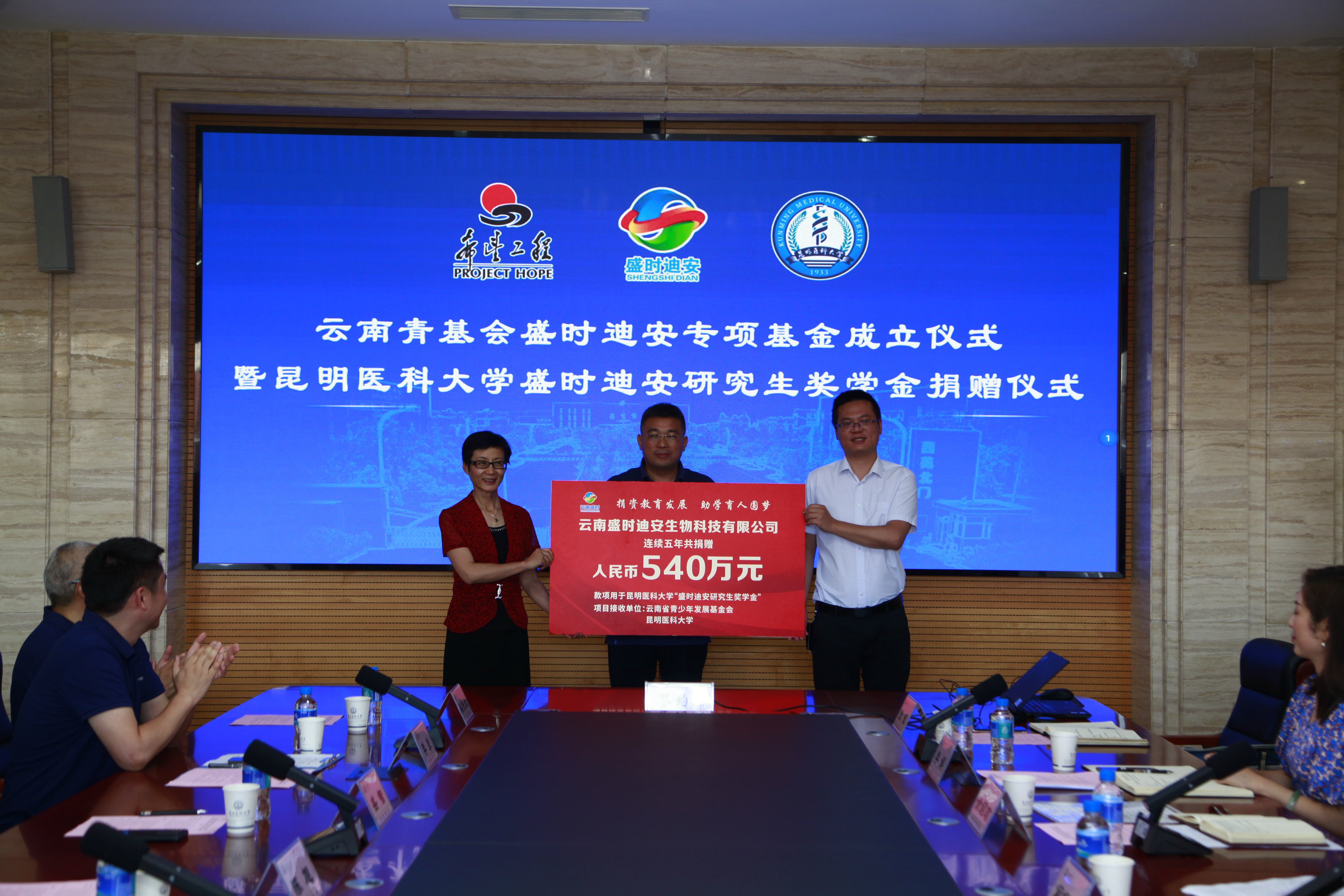 据悉,“昆明医科大学盛时迪安研究生奖学金”由云南盛时迪安生物科技有限公司设立,通过云南省青基会连续5年向昆明医科大学捐赠奖学金共计540万元,每年用于奖励我校科研能力和专业技能突出、综合表现优异的100名全日制硕、博士研究生。