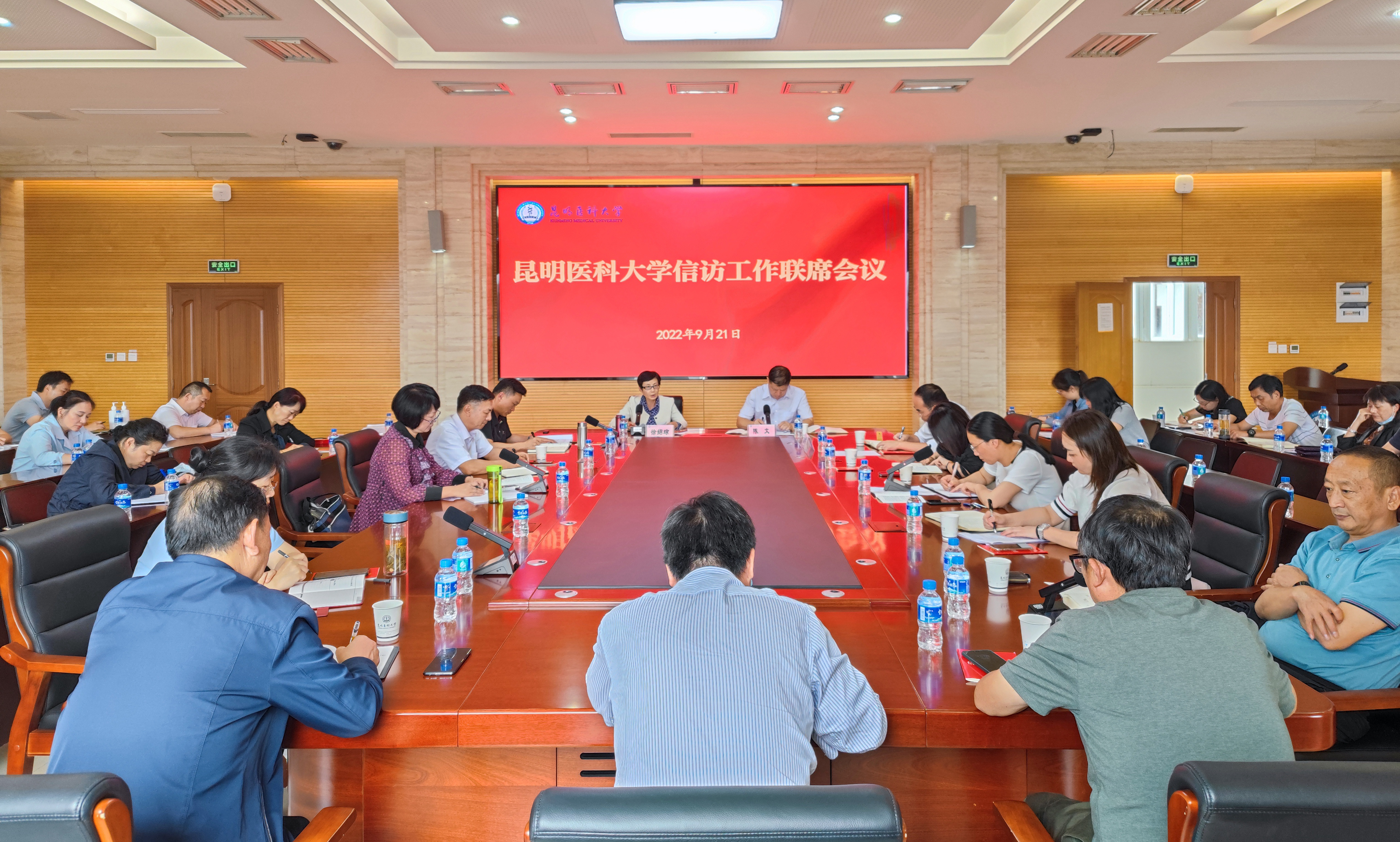 9月21日下午,昆明医科大学信访工作联席会议在呈贡校区召开。学校党委副书记徐绍琼、纪委书记陈文,学校相关职能部门主要负责人,校属各单位党委、直属党支部分管信访工作的负责人参加会议。