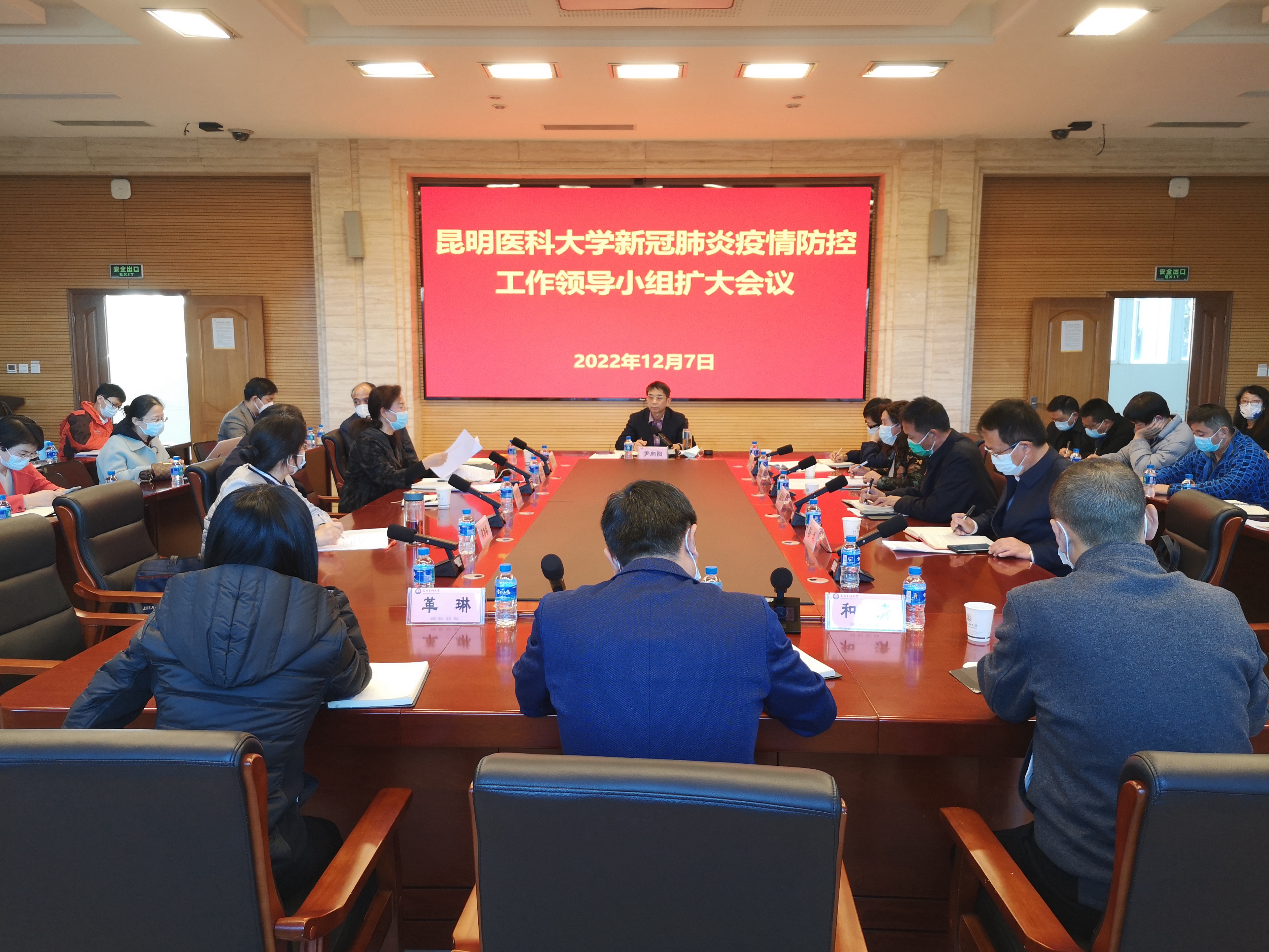 12月7日下午,昆明医科大学召开新冠肺炎疫情防控工作领导小组扩大会议,就贯彻落实国务院联防联控机制综合组《关于进一步优化落实新冠肺炎疫情防控措施的通知》(以下简称“新十条”)精神,优化细化学校疫情防控政策措施等进行研究和部署。