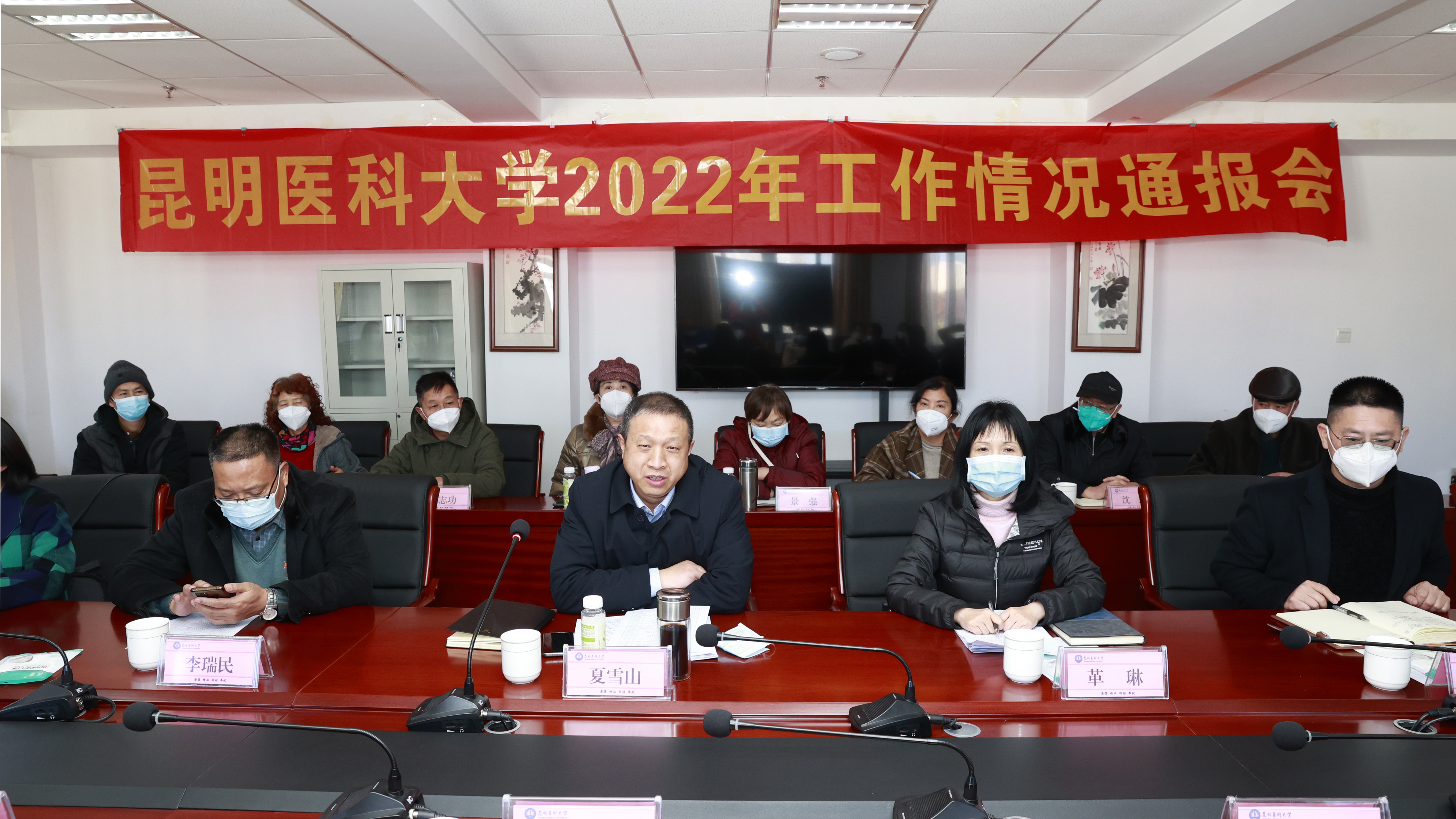 1月4日,昆明医科大学在平政校区召开2022年学校工作情况通报会,校长夏雪山向离退休干部职工通报学校2022年工作情况。
