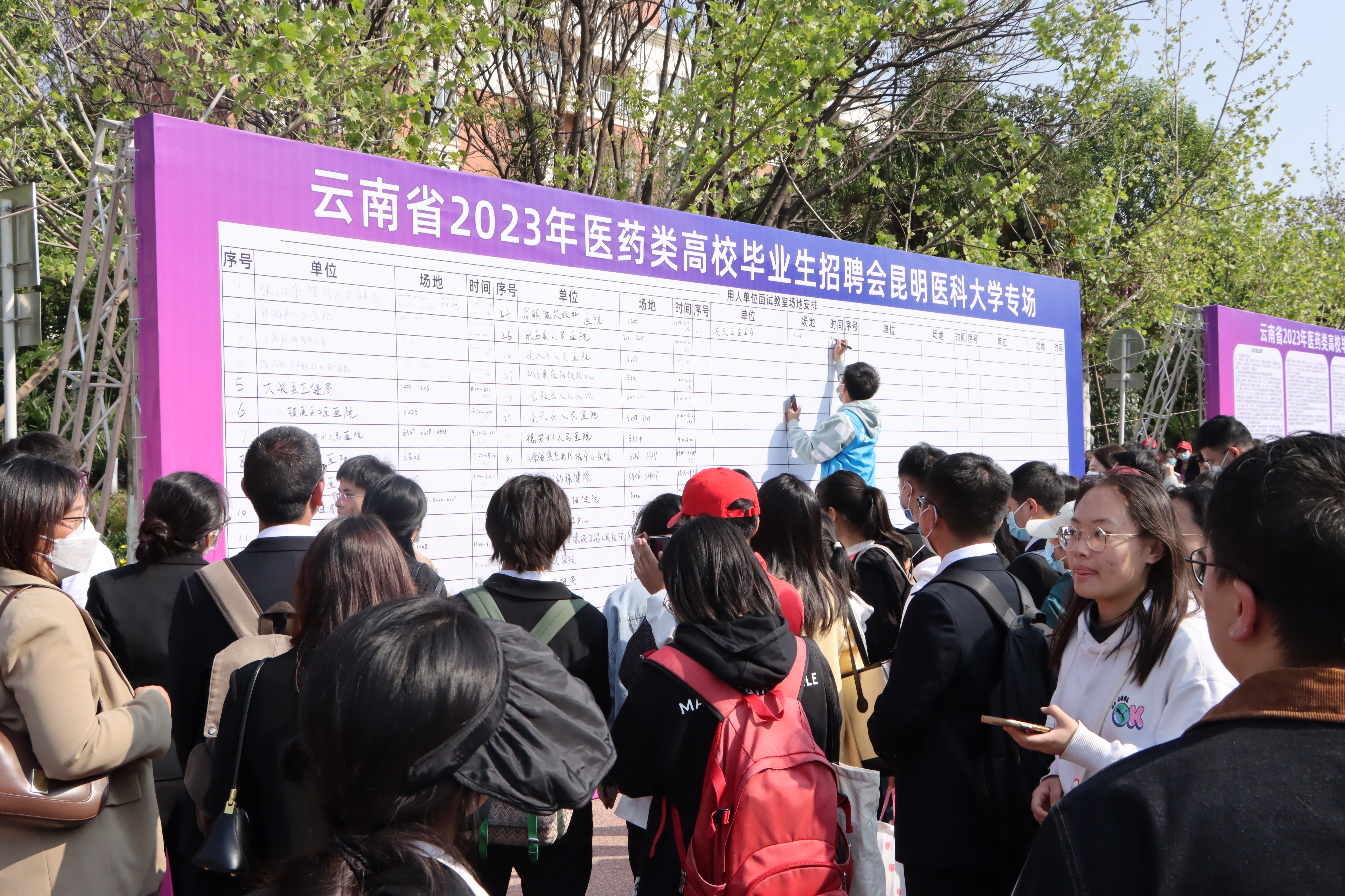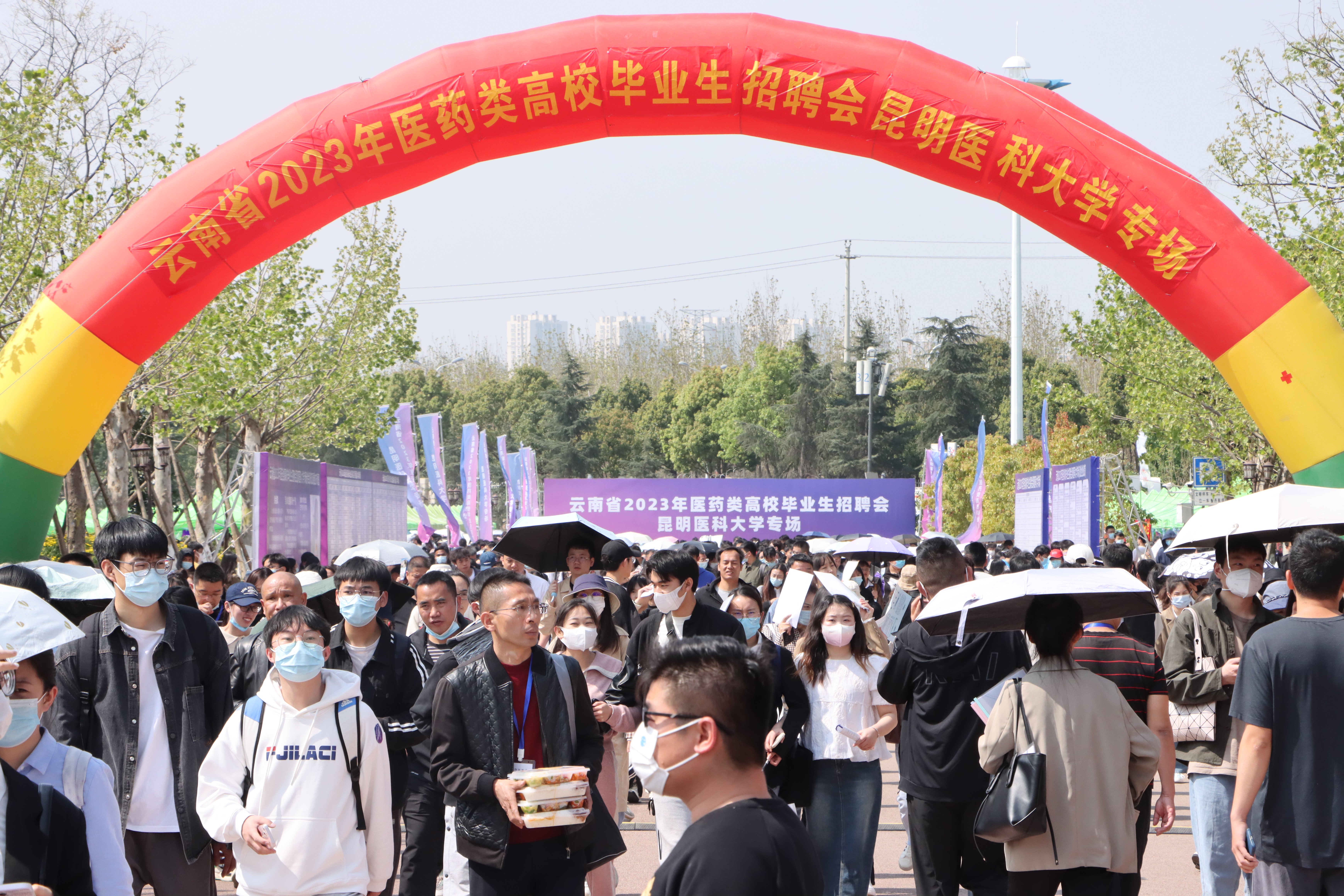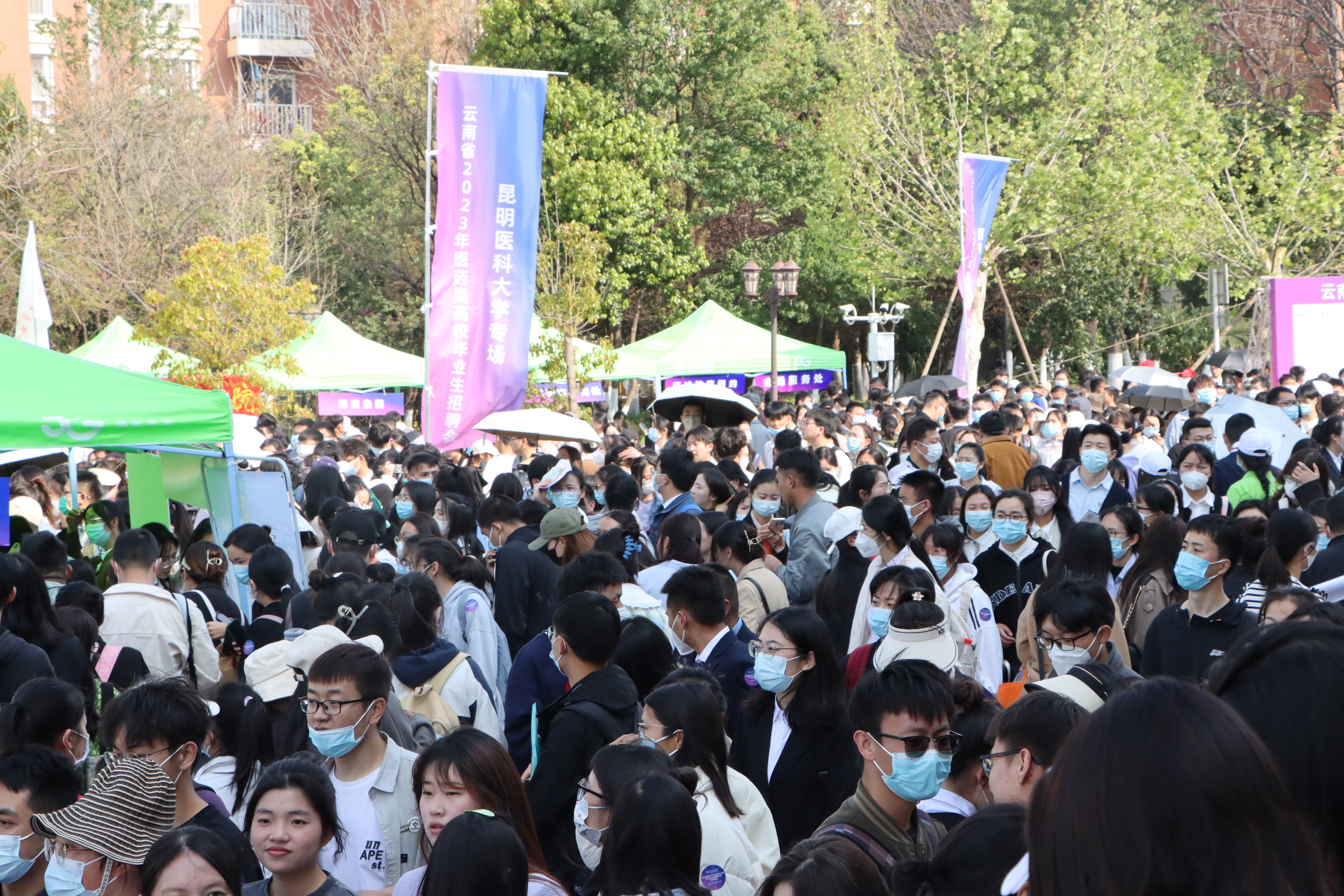 3月18日,云南省2023年医药类高校毕业生招聘会(西医类)在昆明医科大学呈贡校区南苑举行。作为近3年来云南省医药类规模最大、学生参与度最高的校园招聘会,当天,共有来自安徽、广东、广西、海南、四川、重庆、江苏、贵州、云南等14个省市的405家用人单位参会,提供就业岗位10239个,省内外20000余名毕业生到现场求职。