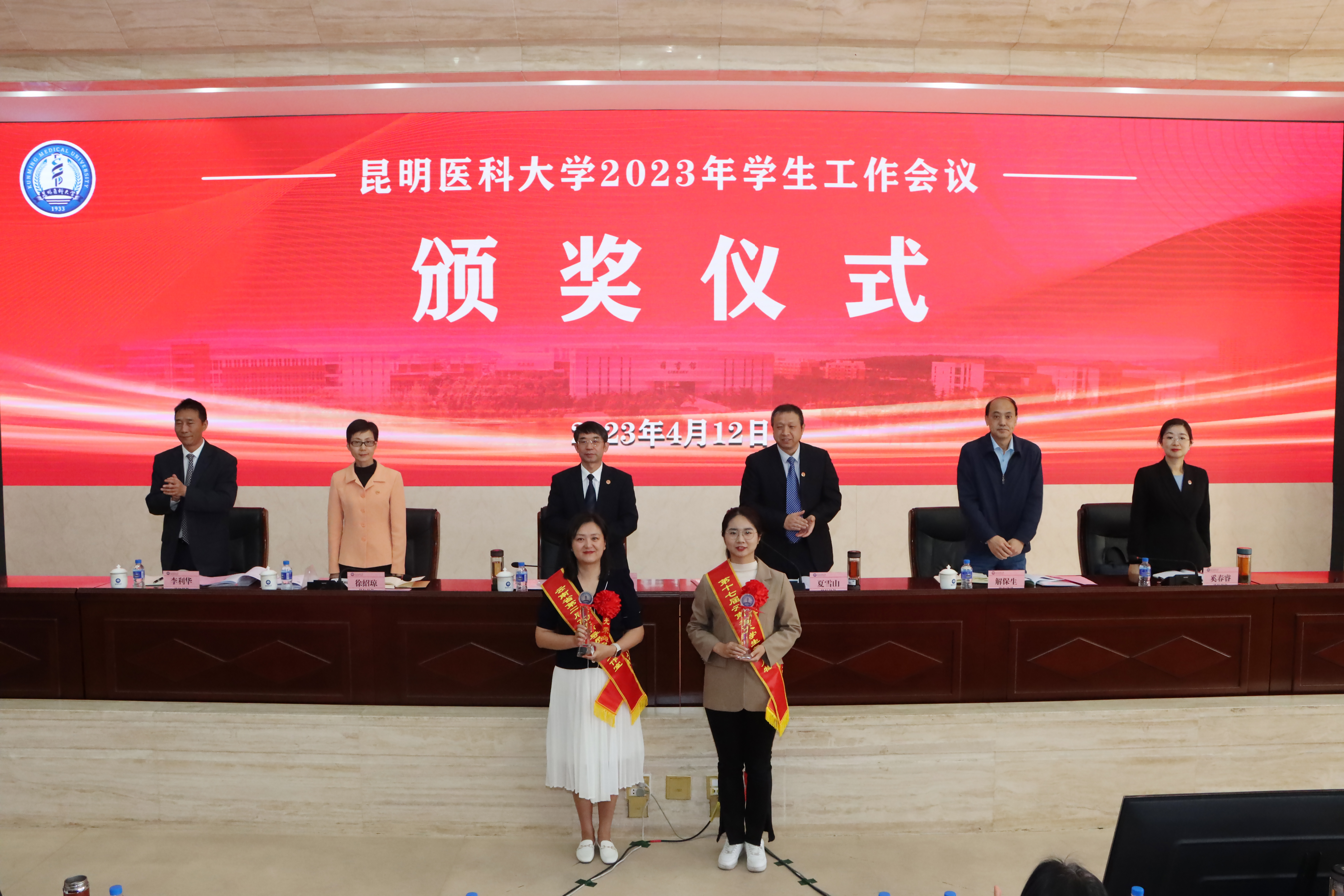 校党委副书记徐绍琼宣读了对云南省第二届高校辅导员名师工作室、第十七届云南省大学生年度人物,2022年度学生工作、就业工作、武装工作先进单位的表彰决定。