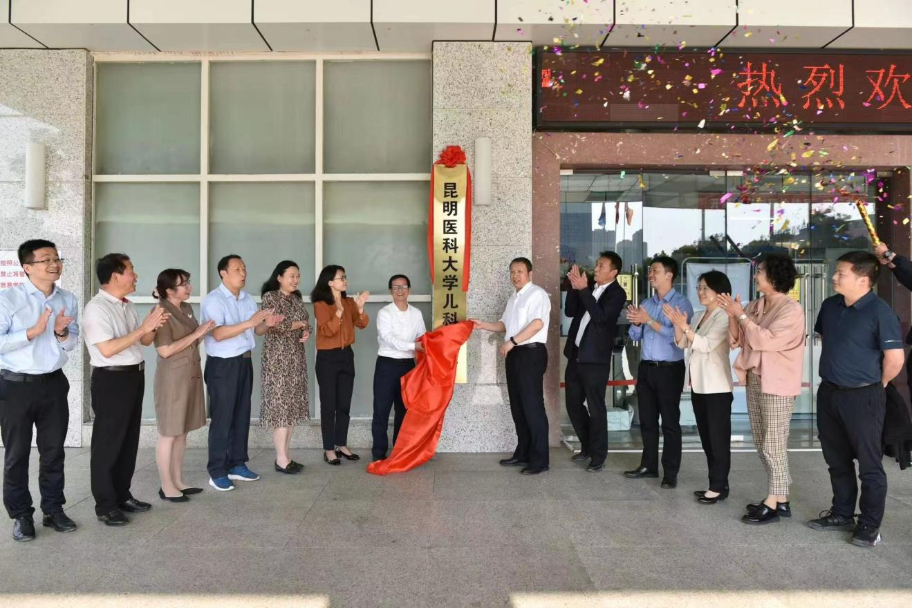 仪式上,校长夏雪山、附属儿童医院院长张铁松共同为“昆明医科大学儿科学院”揭牌。