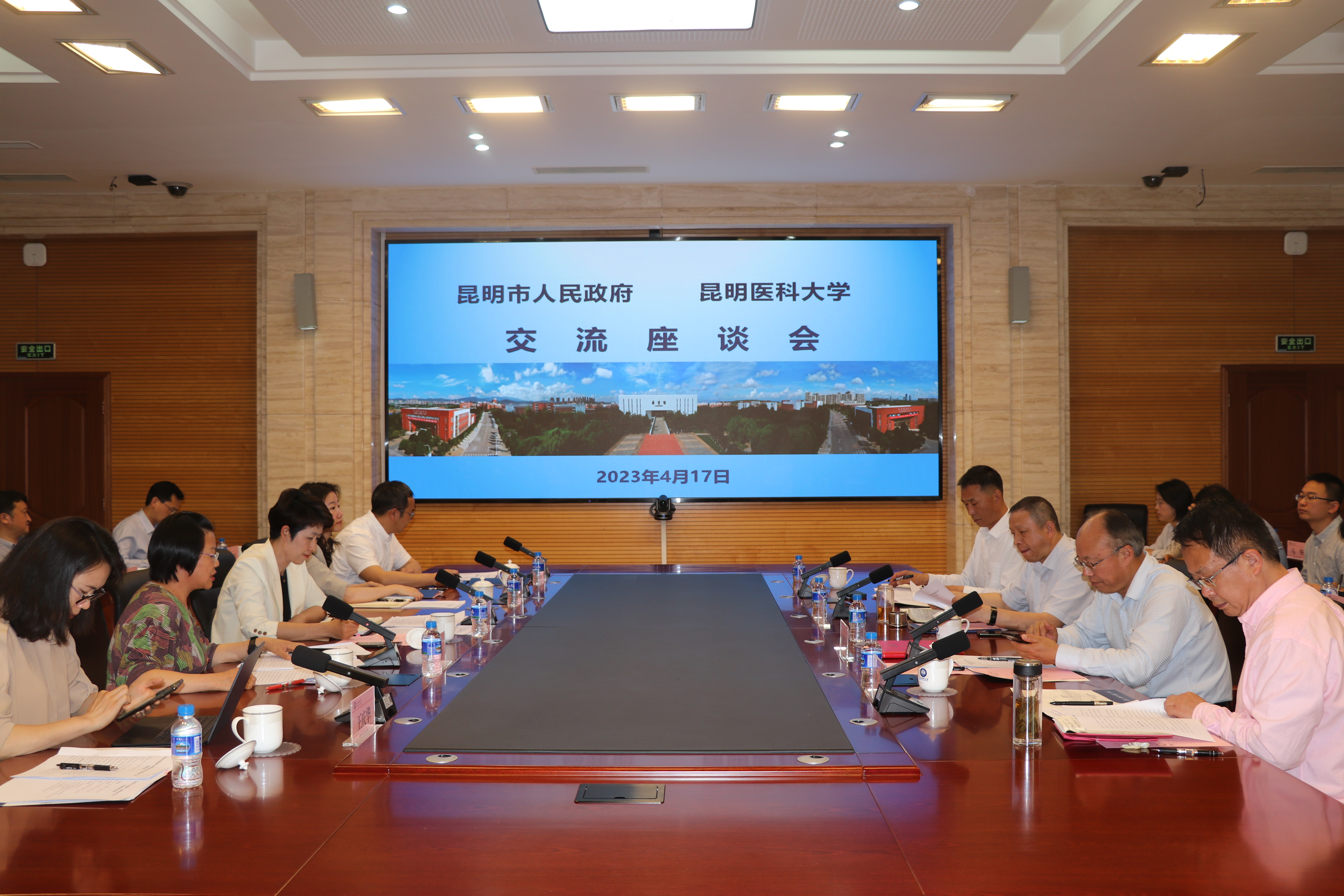 昆明市政府副秘书长陈晓、市卫生健康委主要负责人、市属公立医院主要负责人,学校校长办公室、教务处、研究生处、科学技术处、人事处、基建处、发展改革研究中心、就业指导中心、医院管理与发展中心主要负责人参加交流座谈。