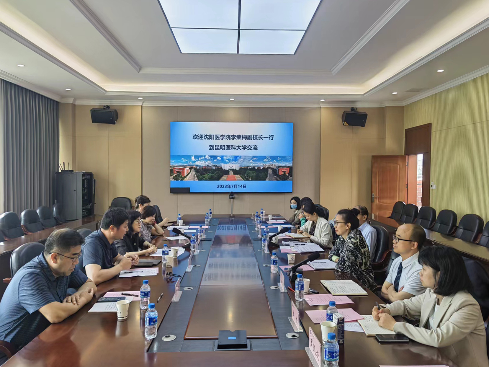 7月14日,沈阳医学院副校长李荣梅一行5人到昆明医科大学进行考察交流。昆明医科大学副校长解保生,教务处、药学院、康复学院负责人及相关教师参加座谈。