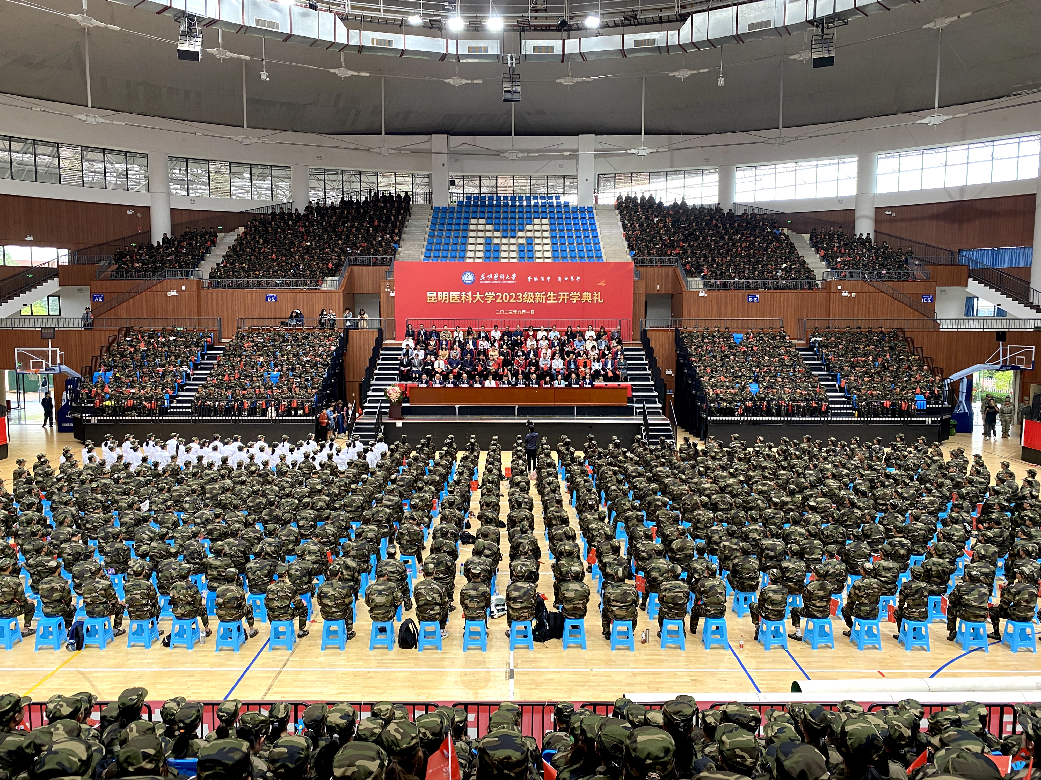 9月1日,昆明医科大学2023级新生开学典礼在呈贡校区举行。学校党政领导、党委学生工作委员会全体成员,各学院党政主要负责人、教师代表、优秀校友代表、老生代表和全体2023级新生参加开学典礼。
