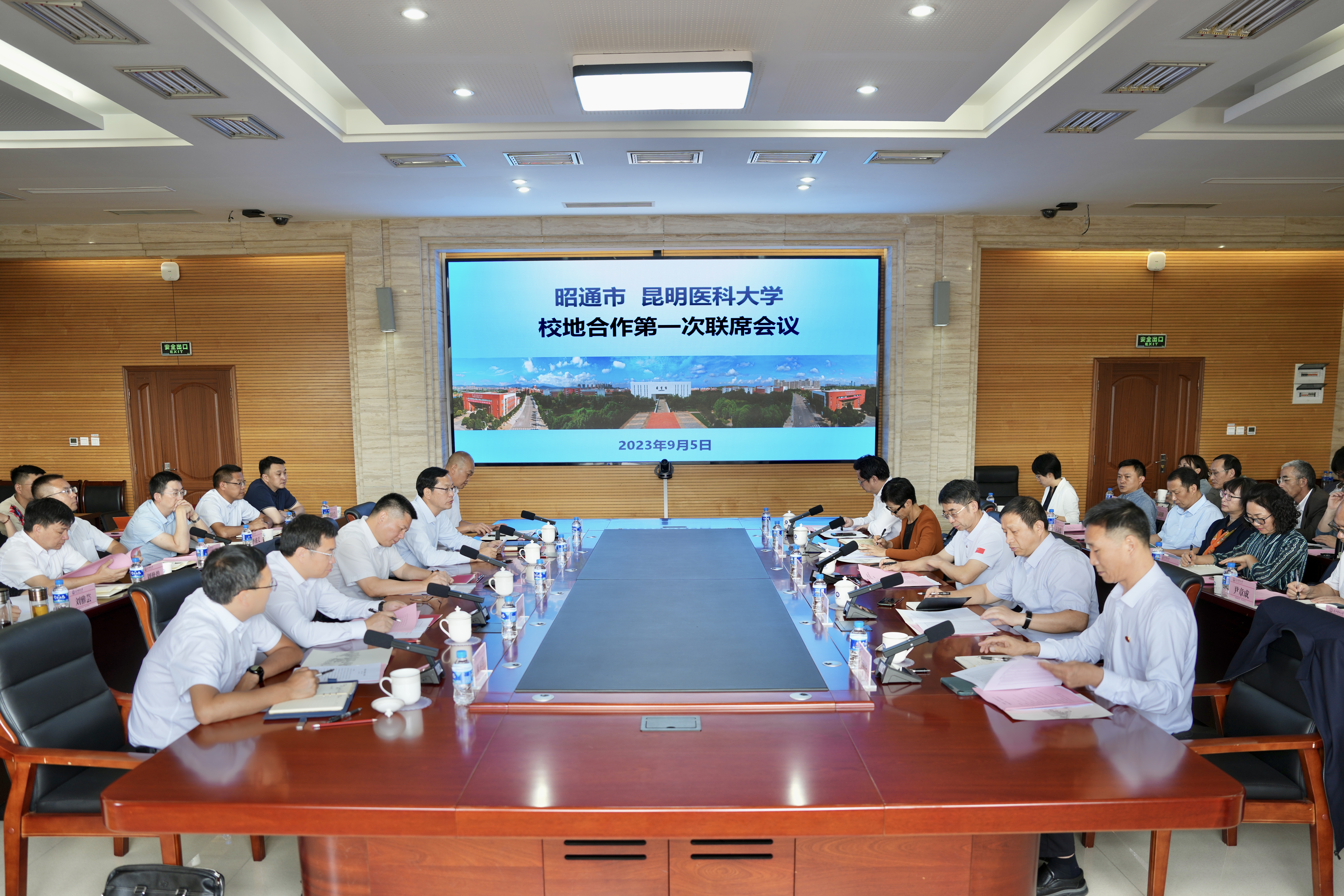 9月5日,昭通市委、市政府与昆明医科大学在昆明举行校地合作第一次联席会议,深入学习贯彻习近平总书记关于卫生健康的重要论述,认真落实省委十一届四次全会和全省卫生健康大会精神,共谋卫生健康事业高质量发展。昭通市委书记苏永忠,昆明医科大学党委书记尹向阳、校长夏雪山出席会议并讲话。