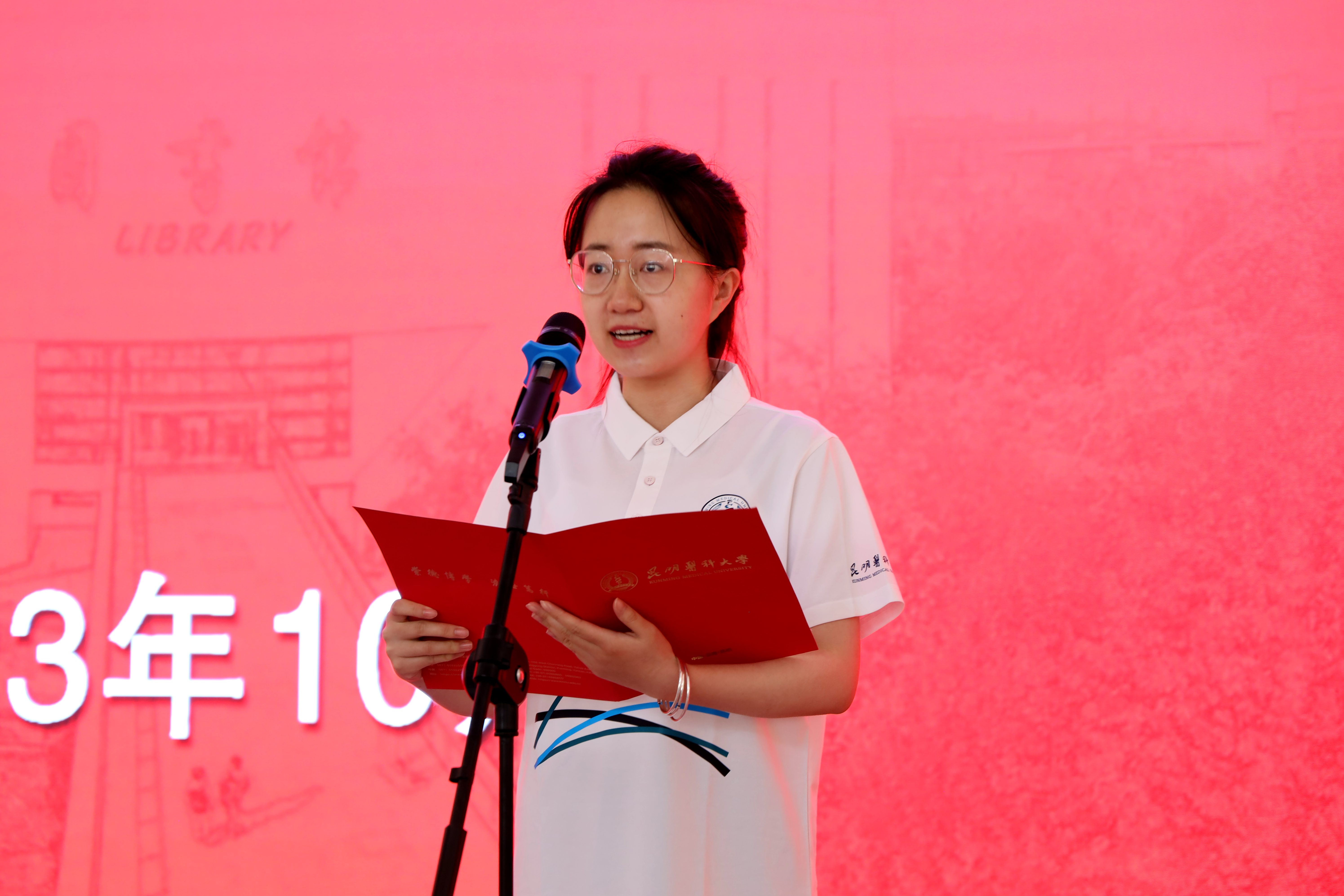 讲解员代表、基础医学院2021级临床医学四大班龙静雅同学在仪式上发言,表示有信心和决心讲好昆医故事,做好昆医历史的讲述者、昆医精神的传递者。