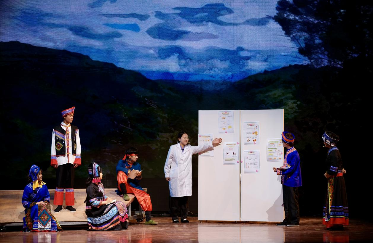 据悉,《筑梦昆医》校园舞台剧是学校将医学与人文教育相结合、德育智育美育并举培养人才的代表作。本剧自2023年1月开始策划至今,历时10个月,由学校建校90周年工作领导小组出品,云南艺术学院专业团队指导执行,是两校合作开展美育教育的又一次生动实践。全剧参演人员93人,全部为昆医在校学生。自10月13日至15日,本剧已连续演出4场,共有6000余名师生观看演出。