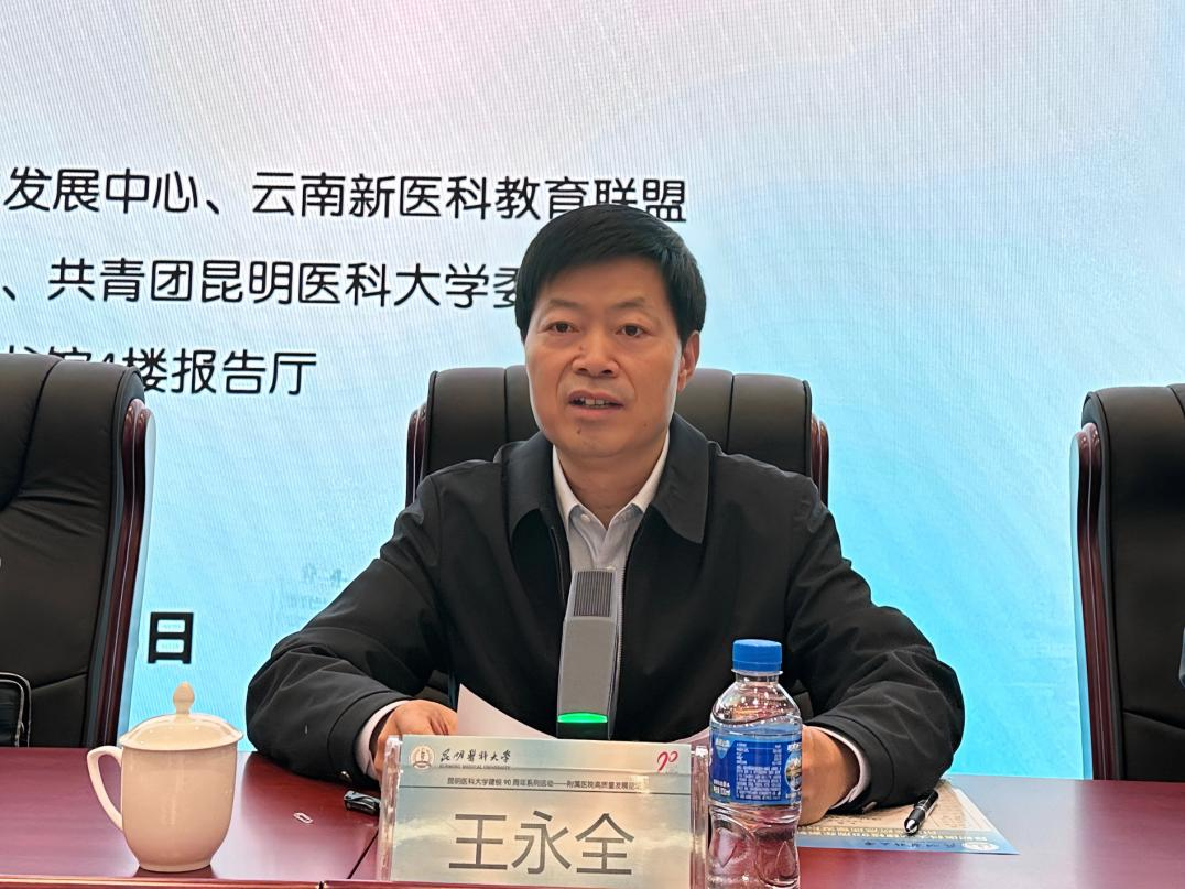 王永全在致辞中指出,90年来,昆明医科大学为全省及全国输送了大量理论扎实、技能过硬的医疗人才。希望昆明医科大学继续秉承心系边疆、艰苦奋斗的光荣传统,坚定乐育为怀、慈爱为民、服务桑梓的办学宗旨,深化改革,扩大开放,繁荣学术,发展文化,更好地服务云南卫生健康事业,促进经济社会高质量发展,为建设成为百年名校努力奋斗。