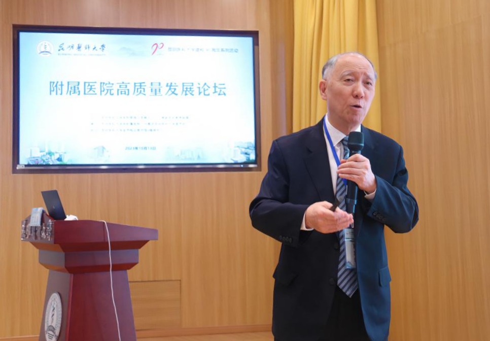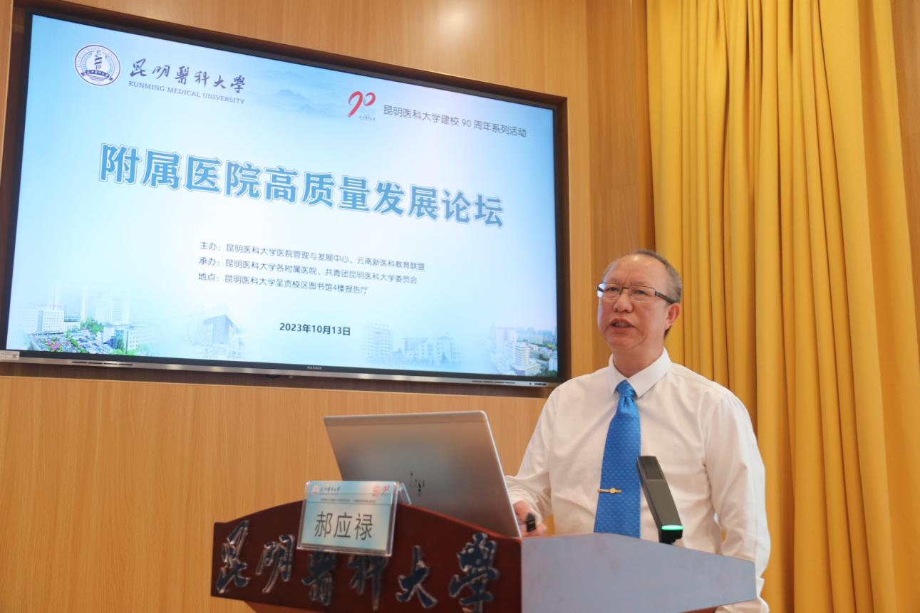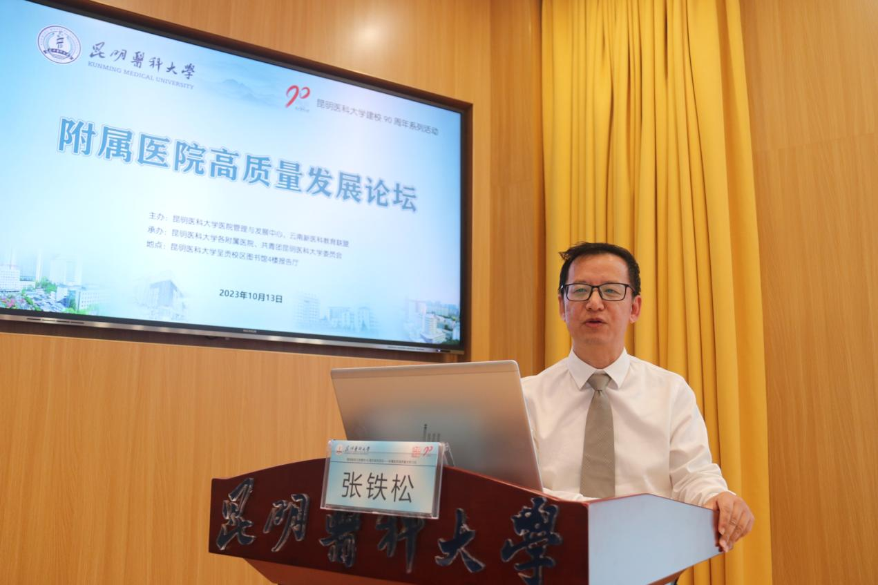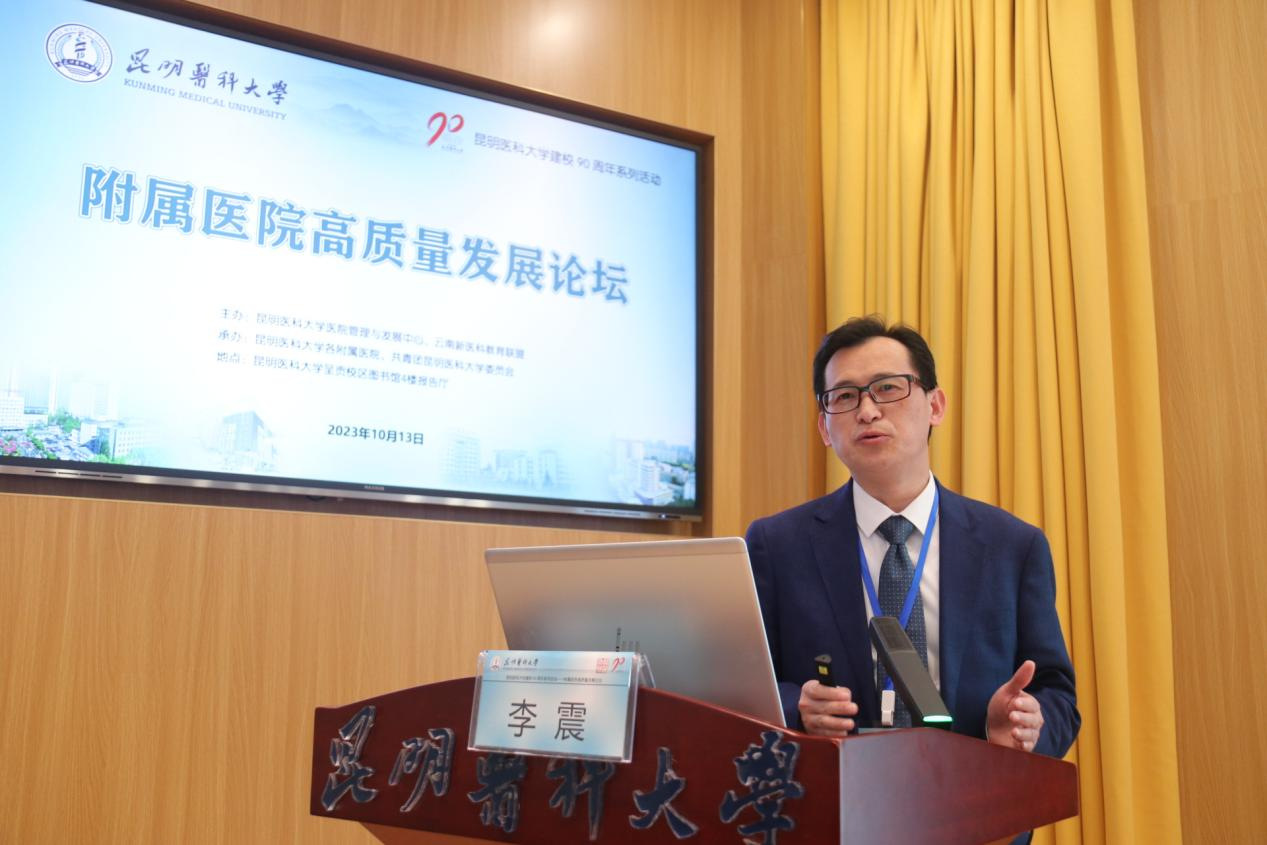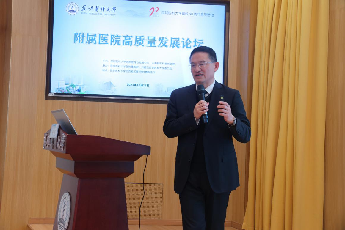 随后,9位附属医院的医院管理者分别作主题讲座。昆明医科大学第一附属医院副院长缪应雷作《以学科建设为抓手推动医院高质量发展》主题讲座;昆明医科大学第二附属医院院长曾勇作《智慧医院赋能管理提升患者就医体验》主题讲座;昆明医科大学第三附属医院党委书记刘志敏作《蹄疾步稳勇毅笃行以高质量党建引领医院高质量发展》主题讲座;昆明医科大学附属口腔医院党委书记尹章成作《为了微笑的坚持——口腔医疗对口帮扶 从脱贫攻坚到乡村振兴》主题讲座。昆明医科大学附属延安医院院长李汝红作《医院建设中的核心竞争力——临床重点科室建设》主题讲座;昆明医科大学附属曲靖医院党委书记刘培万作《云南省区域医疗中心建设的曲靖实践》主题讲座;昆明医科大学附属甘美医院党委书记、院长李震作《育人为先 传道授业 医教协同推动创新发展》主题讲座;昆明医科大学附属儿童医院院长张铁松作《云南省临床医学中心建设——附属儿童医院探索实践》主题讲座;昆明医科大学第六附属医院院长郝应禄作《“国考”背景下医院绩效管理实践与探索》主题讲座。
