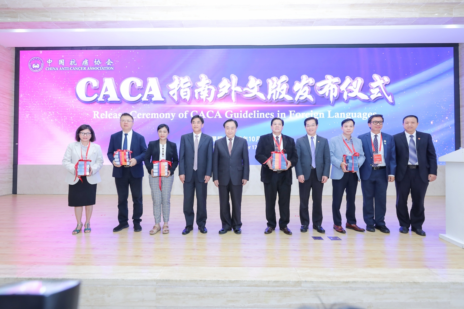 仪式上,樊代明院士表示,10年来,共建“一带一路”秉持人类命运共同体理念,始终坚持共商共建共享原则,既发展了中国,也造福了世界。此次CACA指南10个高发癌种精简并翻译为南亚东南亚国家9种语言,合计90本图书出版发布,在“一带一路”十周年之际,将这套宝贵的“中国方案”推向南亚、东南亚等国家,共同抗击肿瘤、促进区域健康,意义重大。