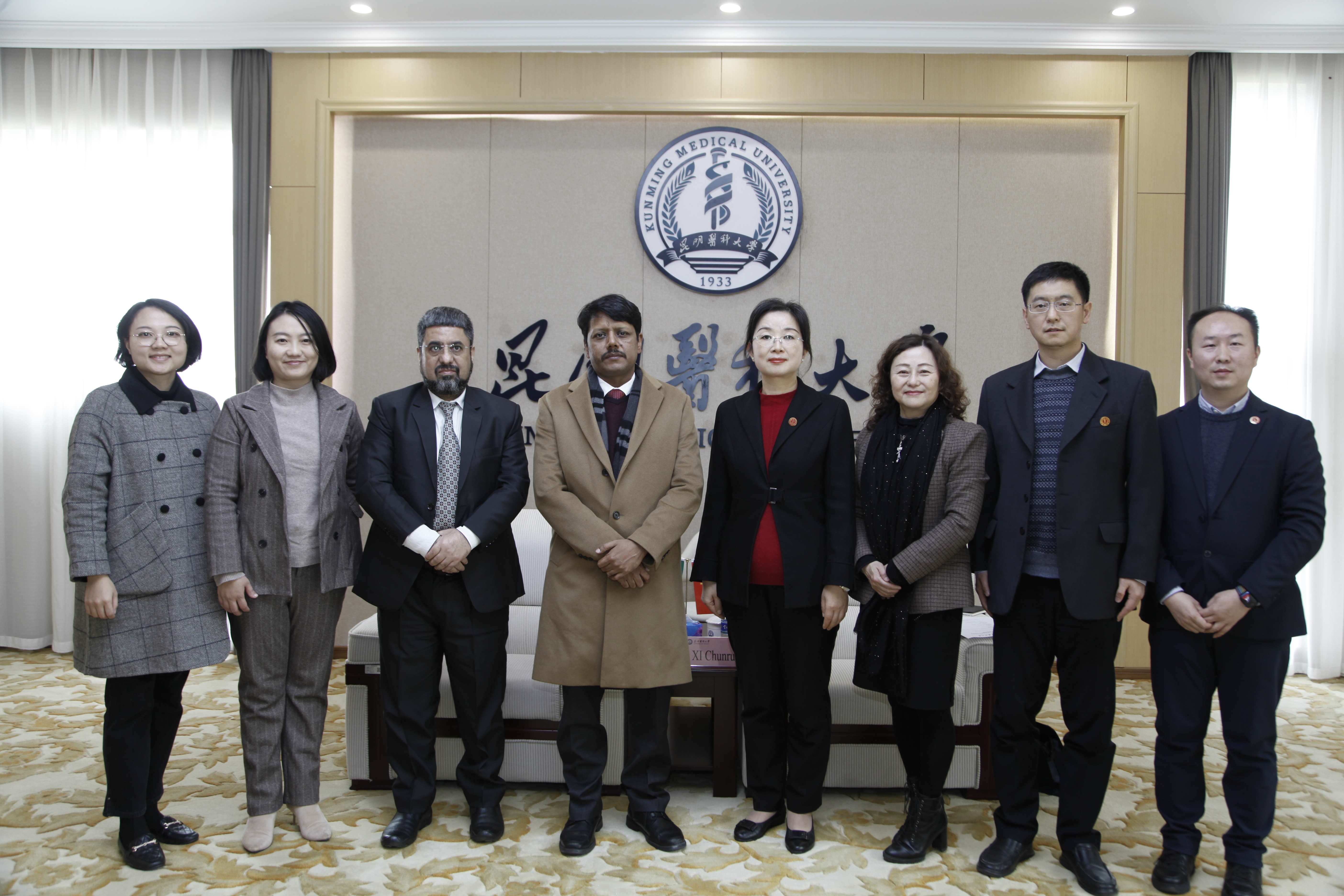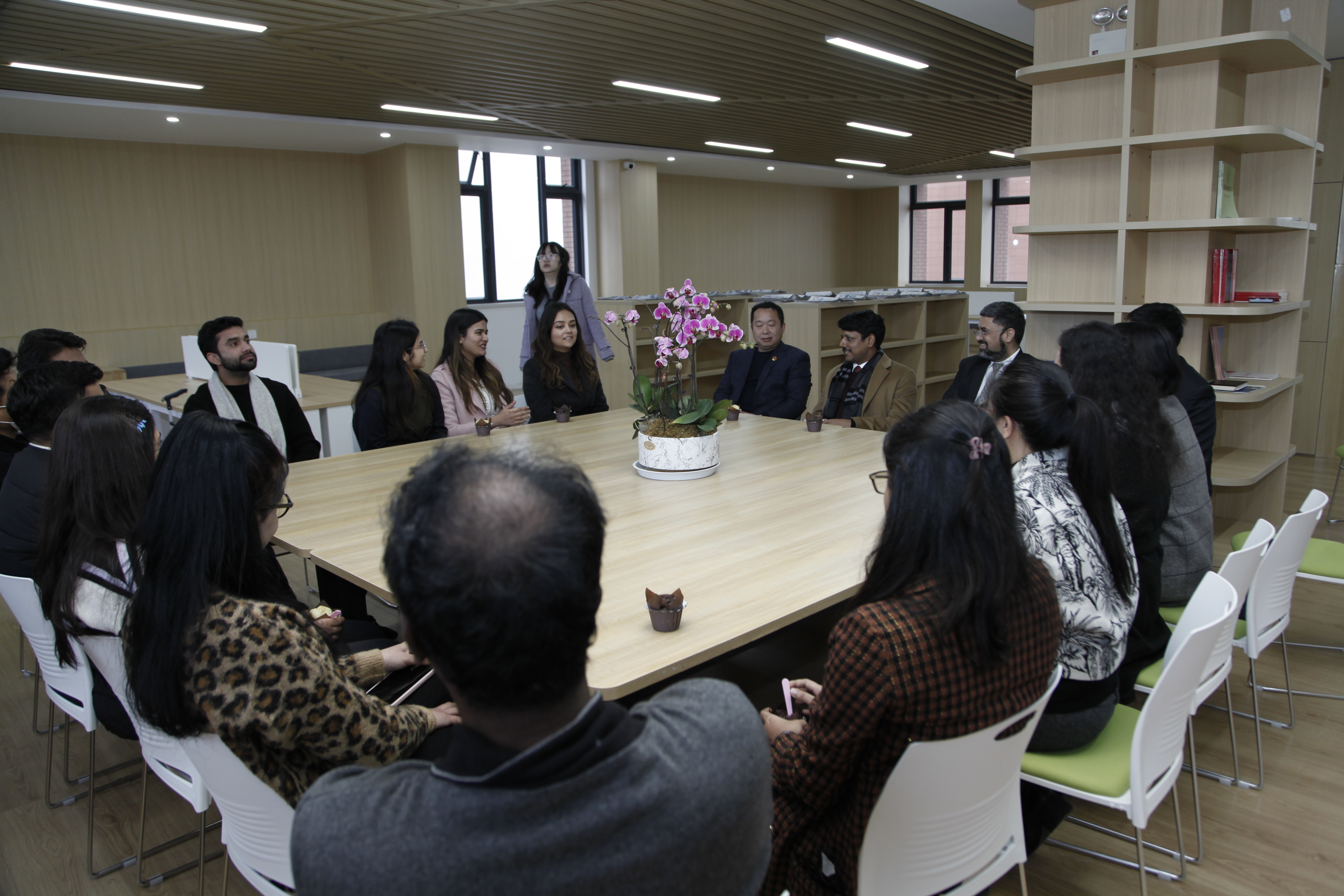 会谈结束后,何继往一行参观了学校临床技能中心和人体科学馆,对学校优良的办学条件印象深刻。参观结束后,何继往一行到国际教育学院与部分印度籍留学生进行了交流座谈,详细了解学生的学习情况、未来的就业方向、存在的困难问题,并勉励学生认真学习,争做中印文化交流的友好使者。