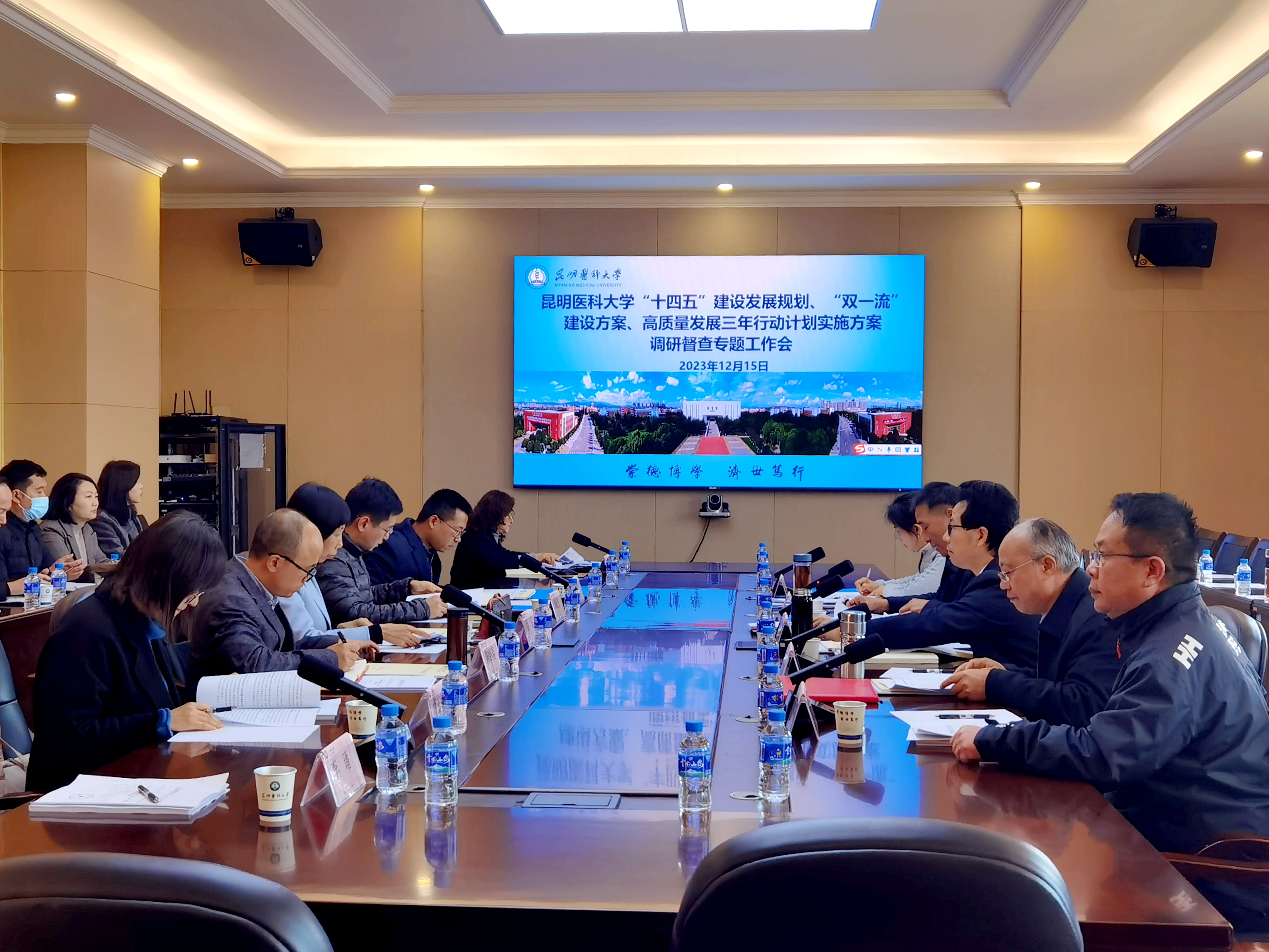 12月15日,昆明医科大学组织召开调研督查专题工作会,进一步推动学校“十四五”建设发展规划、“双一流”建设方案和《昆明医科大学高质量发展三年行动计划实施方案(2023—2025年)》(以下简称“一规划两方案”)落地见效,助推学校高质量发展。