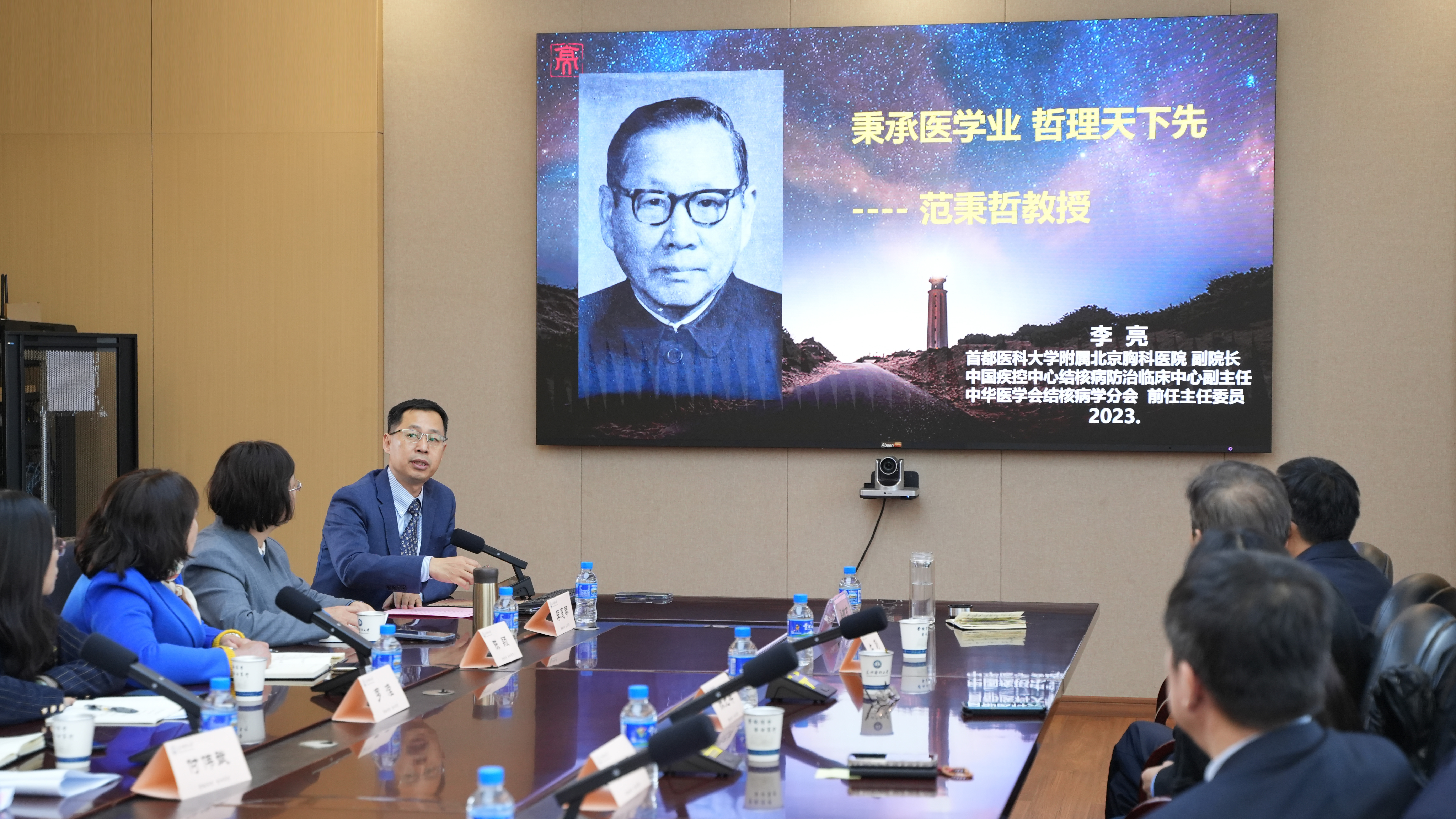 研讨会上,首都医科大学附属北京胸科医院副院长李亮以《秉承医学业哲理天下先——范秉哲教授》为题作了交流,他从家国情怀、学术思想、学术风范等方面展现了范秉哲教授在医学教育、医院管理、结核病防治等方面的成就与功绩,加深了对范秉哲教授“学业报国、医学教育、学术开拓、情怀结防”学术思想及精神的认识。他指出,要继承和发扬范秉哲教授的学术思想及精神,将这笔宝贵的精神财富运用到推动医疗卫生事业、医学教育建设和发展的实践中,在保障人民健康事业的征程上奋勇向前。