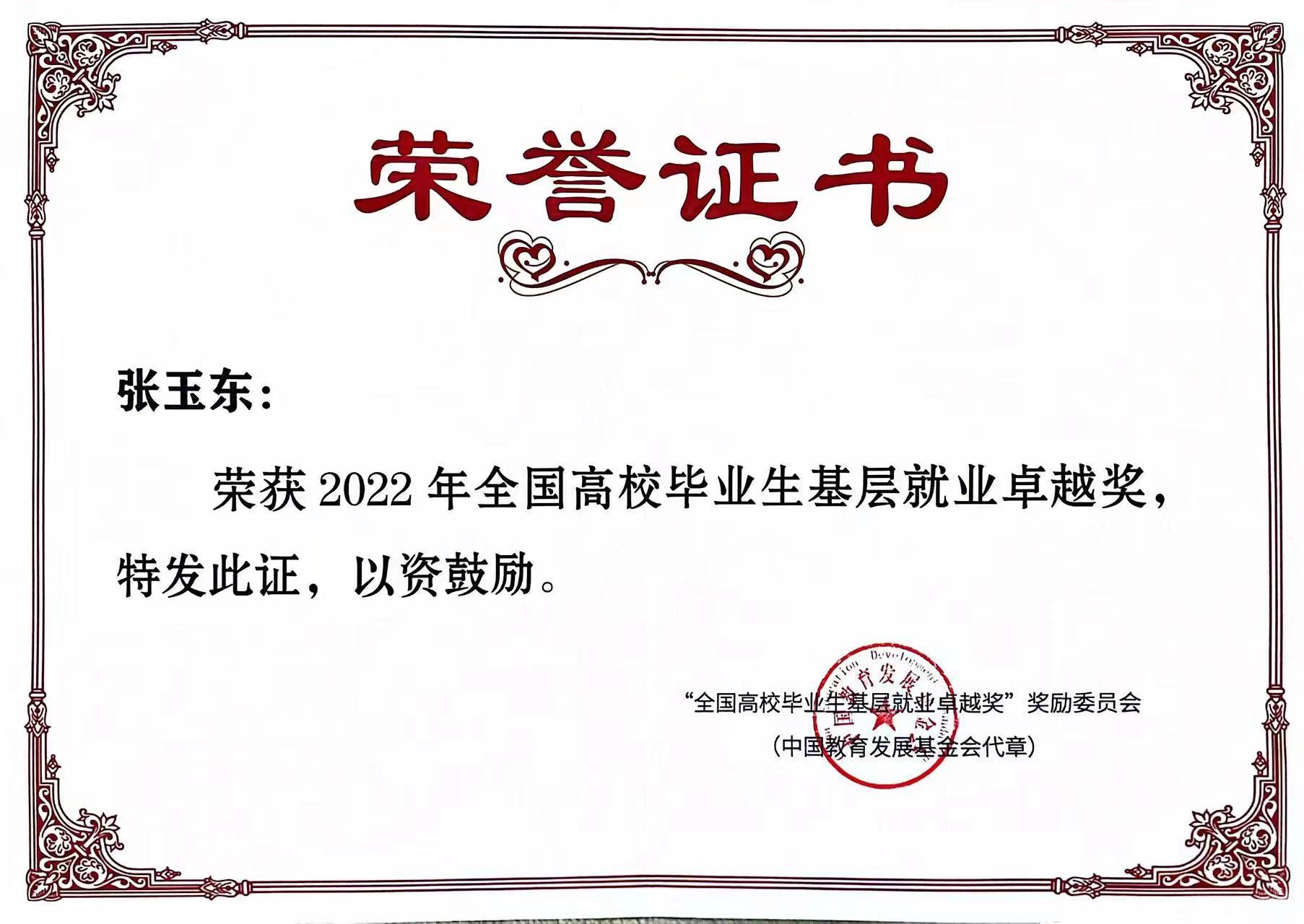 近日,教育部颁发首届“基层就业卓越奖”。昆明医科大学2017届临床医学专业毕业生张玉东荣获首届全国基层就业卓越奖。全省仅有15名高校毕业生获此殊荣。