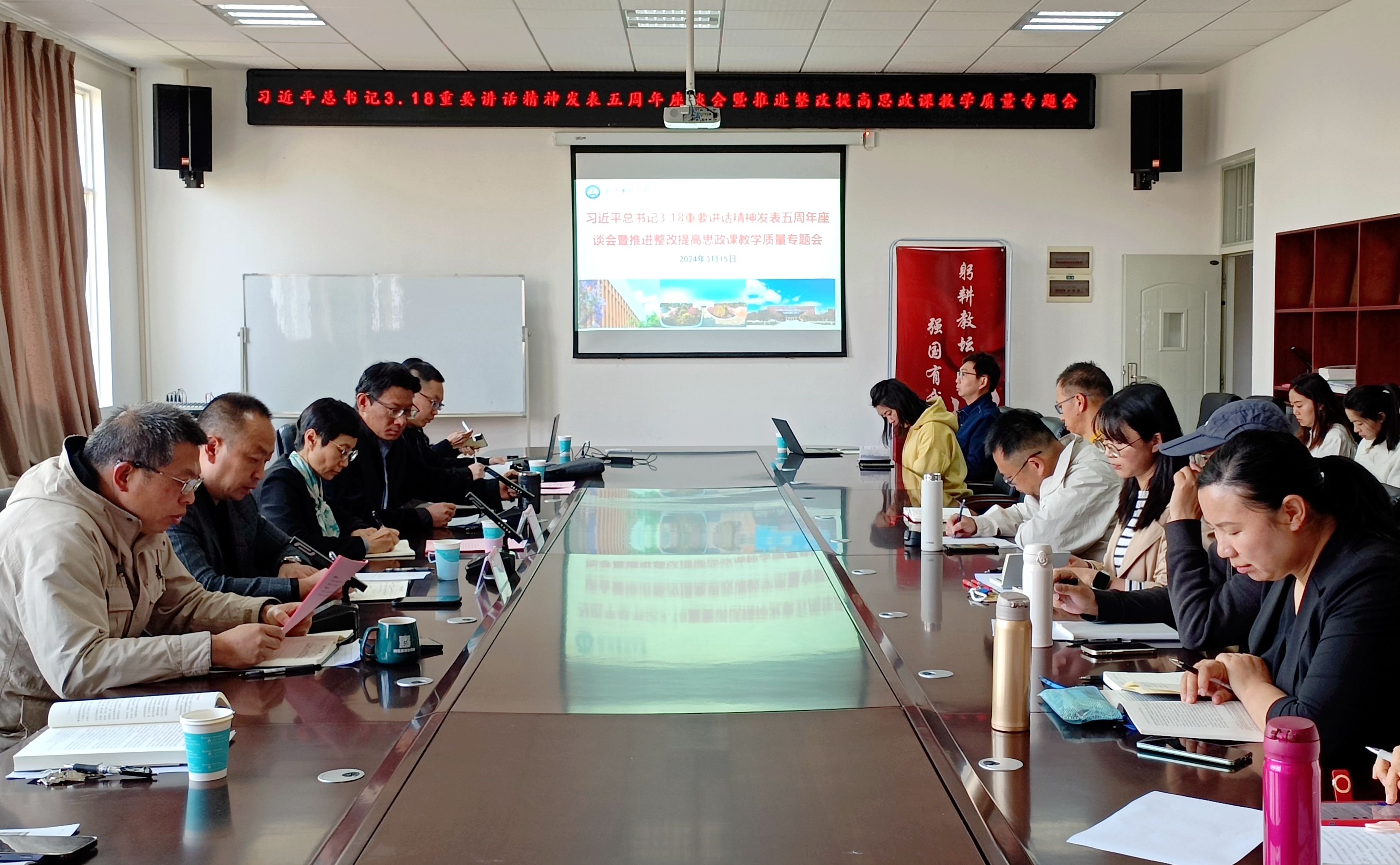 座谈会还举行了思政课教师誓词宣誓仪式。会议还对推进思政课和马克思主义学院发展进行了具体工作安排。