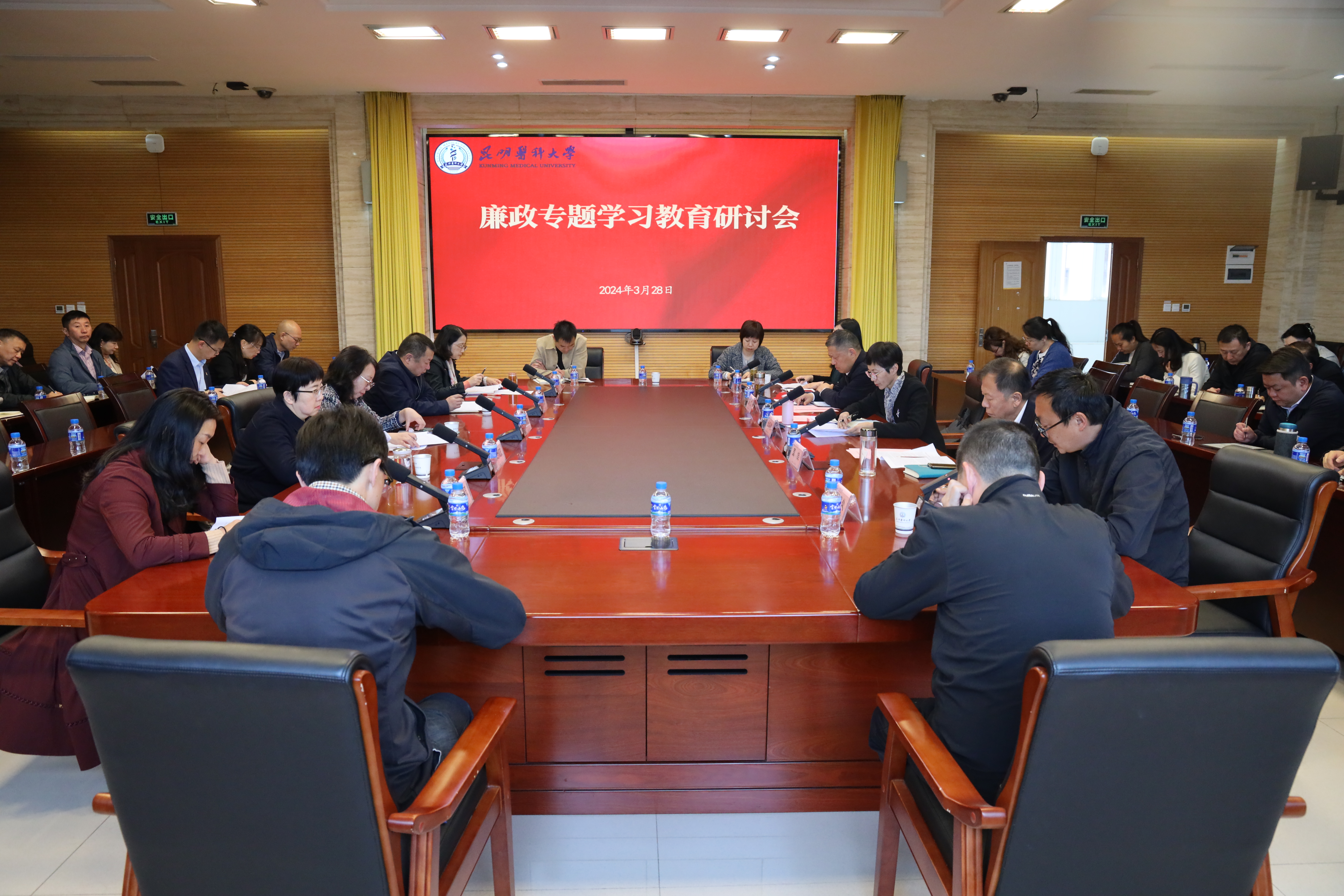 3月28日,昆明医科大学在呈贡校区召开廉政专题学习教育研讨会。学校党委副书记徐绍琼,党委委员、第一附属医院暨第一临床医学院党委书记周佳,纪委书记陈文,校属各单位党委、直属党支部负责人和职能部门负责人等参加会议。