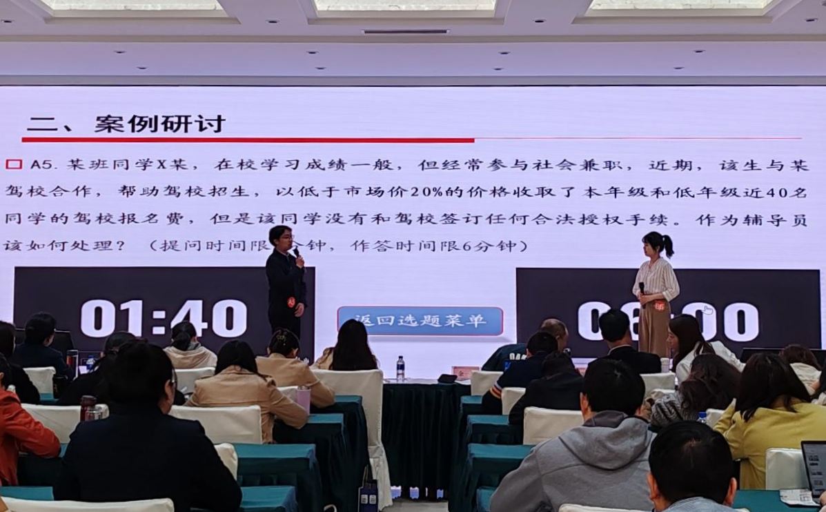 复赛现场包括案例研讨和谈心谈话两个环节,经过激烈角逐,最终评比出一等奖2名、二等奖4名、三等奖6名、“最佳博识奖”“最佳博才奖”和“最佳博智奖”各1名。