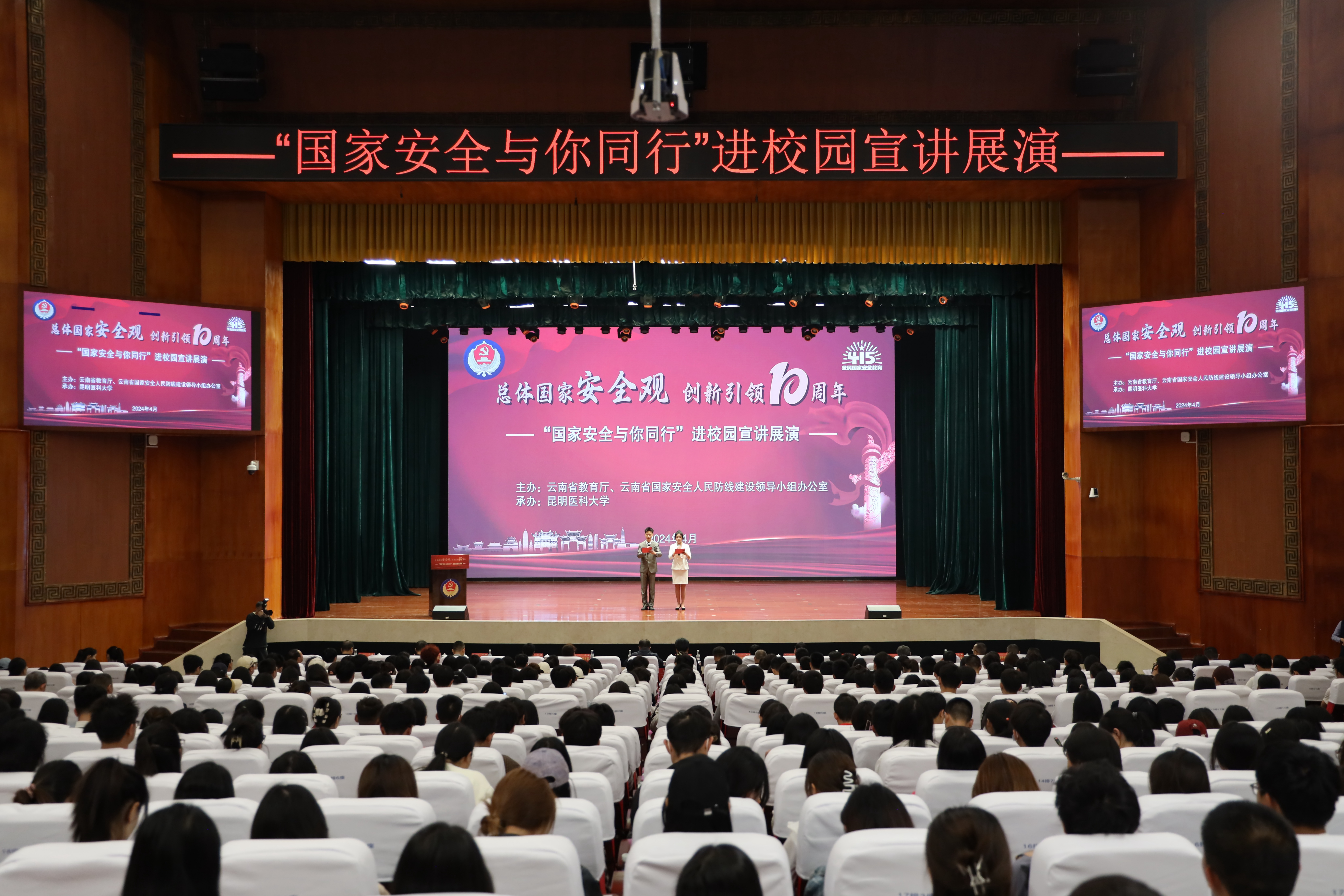 在第九个全民国家安全教育日即将来临之际,4月12日,云南省“国家安全与你同行”进校园宣讲展演活动在昆明医科大学举行。
