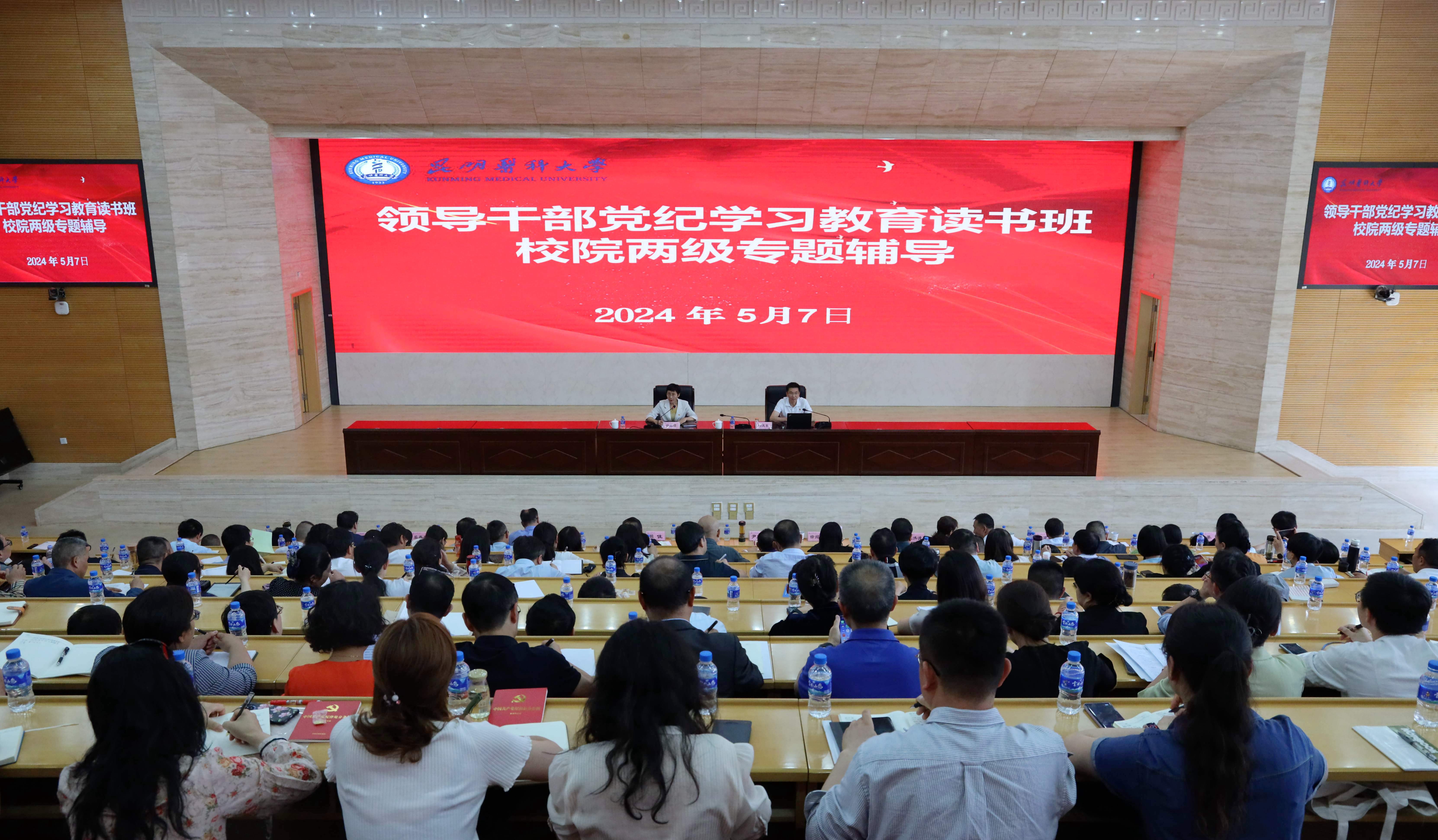 5月7日,昆明医科大学领导干部党纪学习教育读书班校院两级专题辅导在呈贡校区举行。