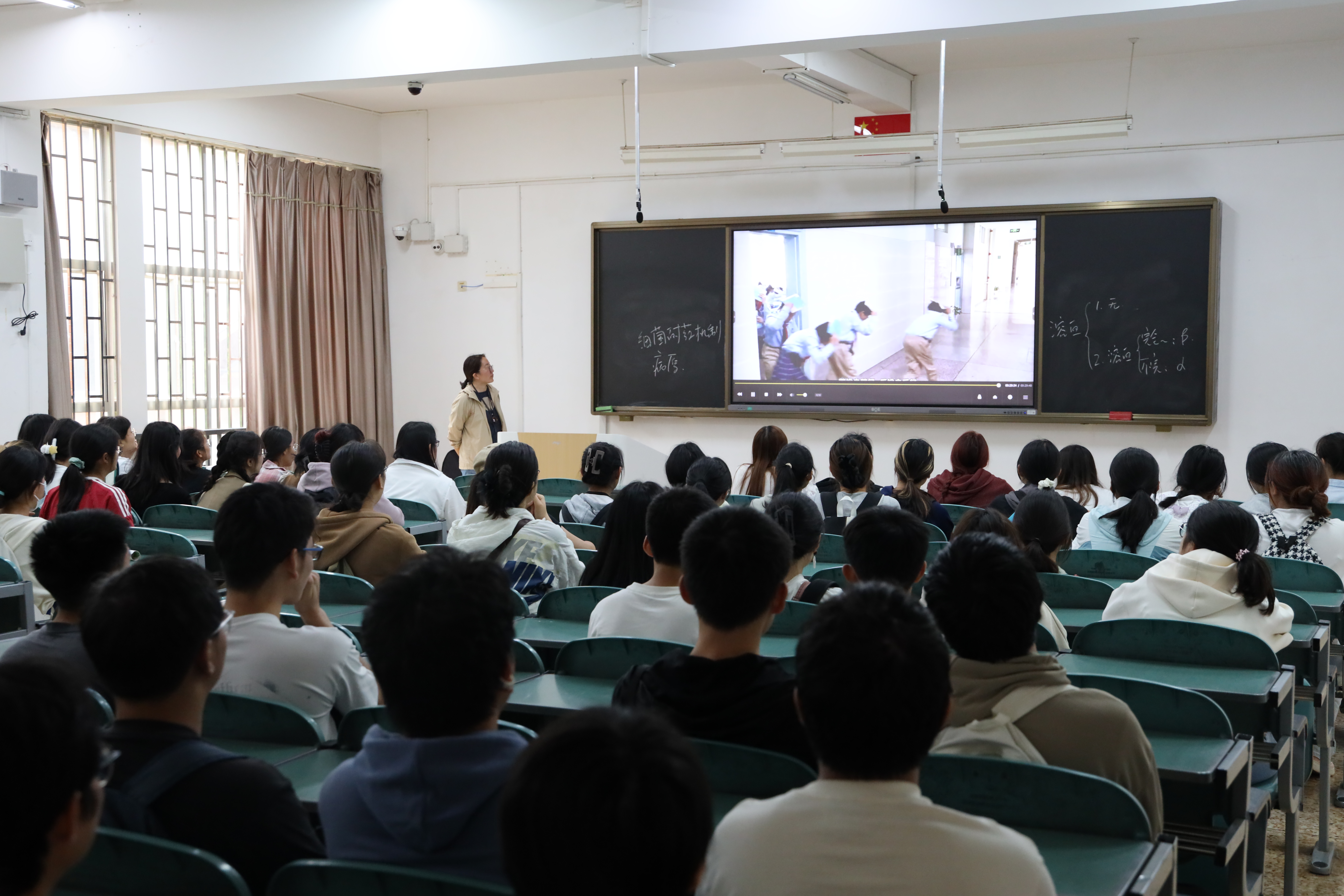 演练前,学校通过电教系统向各教室播放了学校地震应急演练宣传片,对发生地震灾害时的紧急避险、逃生、疏散过程中的注意事项进行普及讲解。