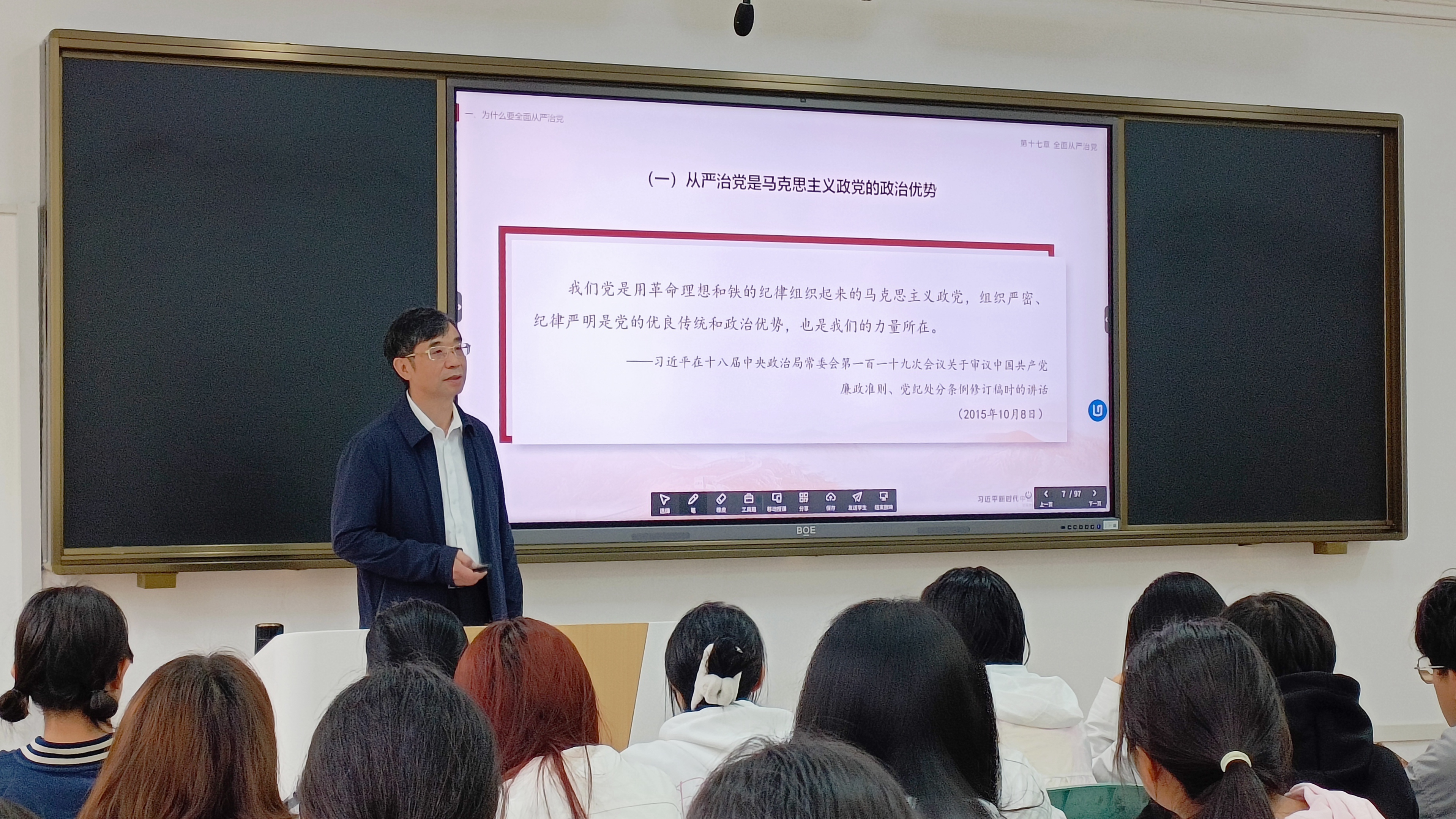 课堂上,尹向阳以问题为导向,围绕中国共产党“为什么要全面从严治党”“为什么党的十八大以来管党治党宽松软状况得到根本扭转”“如何理解全面从严治党这场伟大自我革命”3个问题,回答了“全面从严治党是马克思主义政党的政治优势,全面从严治党是实现民族复兴的根本保障,全面从严治党是决定党兴衰成败的关键因素”,中国共产党始终“把党的政治建设摆在首位,全面加强党的思想建设,全面推进党的组织建设,始终绷紧作风建设这根弦,把纪律的螺丝拧得紧而又紧,将制度建设贯穿党的各项建设之中,坚决打赢反腐败斗争攻坚战持久战”,中国共产党人找到了“自我革命是跳出历史周期率的第二个答案,全面从严治党以其丰富的内涵诠释了自我革命的内在要求,全面从严治党推进自我革命不断走向深入”。