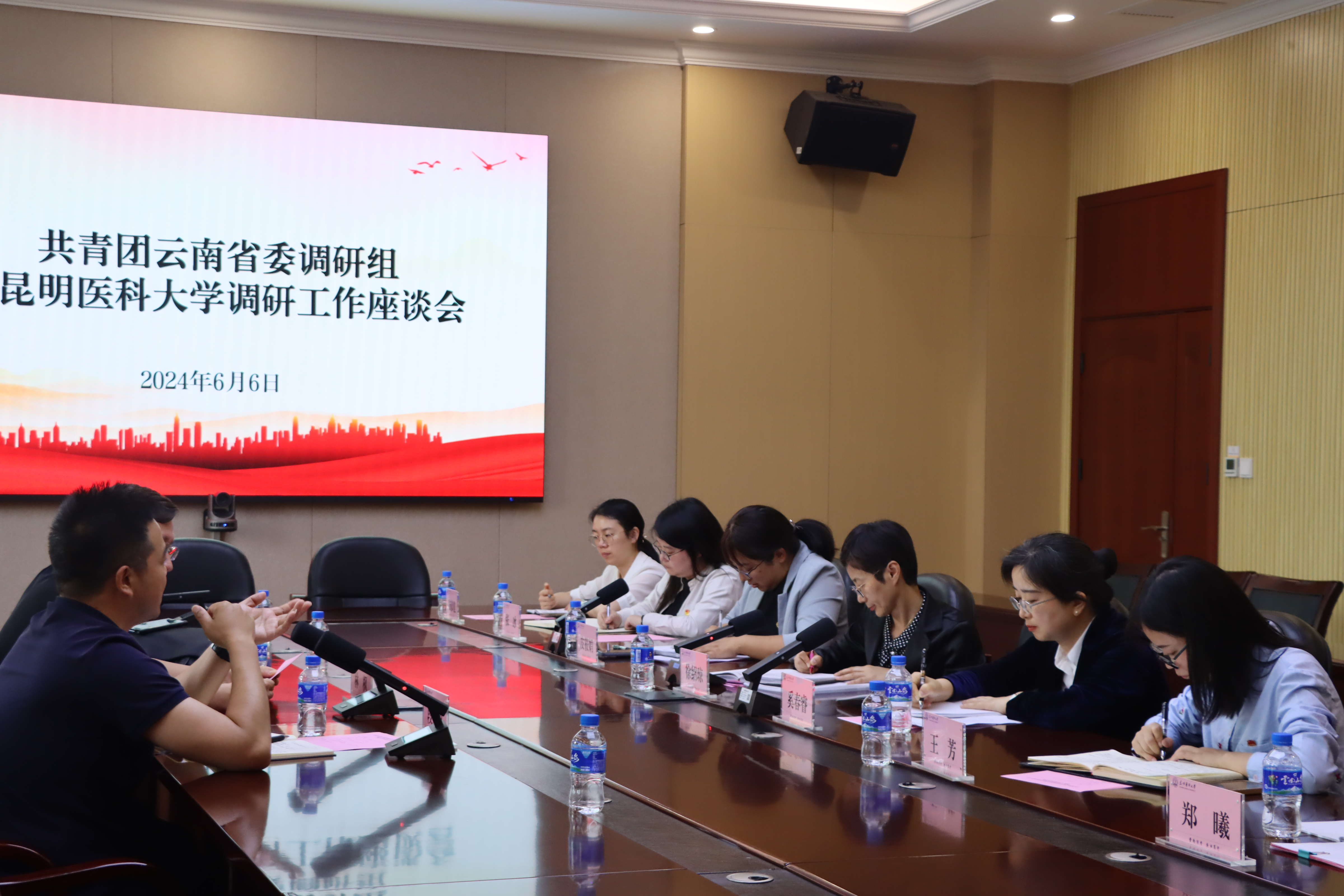 6月6日下午,共青团云南省委副书记段胜忠一行到昆明医科大学调研学校共青团工作。学校党委副书记徐绍琼,党委常委、副校长奚春睿与段胜忠一行座谈交流,团省委学校部、校团委负责人,学校团干部代表参加座谈会。