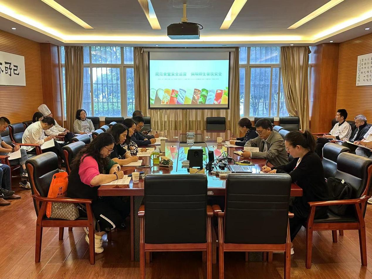 会上,后勤保障中心负责人对下一步做好食品安全工作提出了要求。资产经营有限责任公司负责人就落实落细具体工作进行了安排,餐饮服务部和食品安全员分别汇报了食堂食品采购、加工、储存等环节的工作情况,并表示将严格按照食品安全标准规范操作,确保食品安全,质量监控部负责人简要介绍了师生参与食品安全监督管理的渠道等。