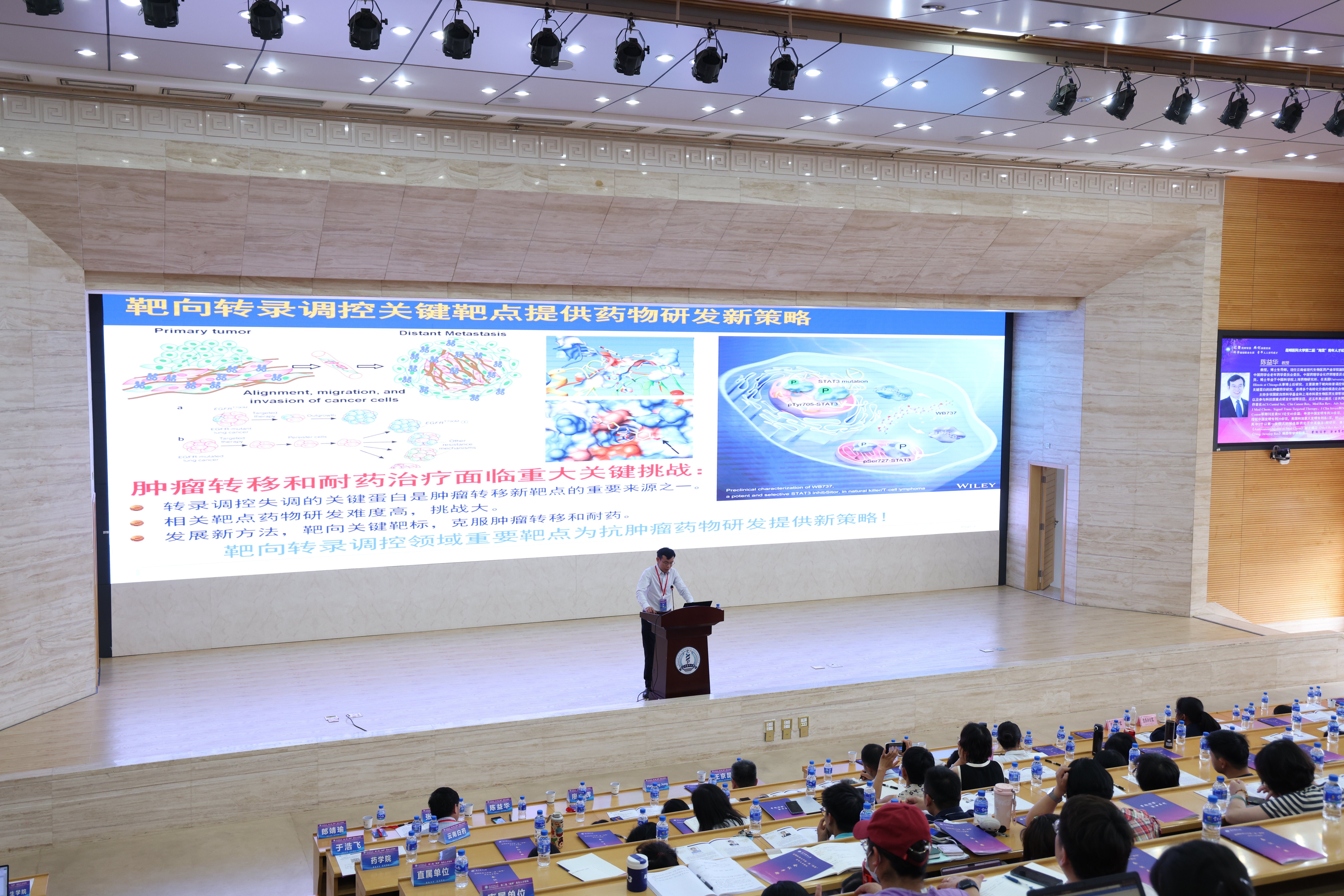 上午的篇章中,云南白药集团股份有限公司中央研究院党委书记、副院长、药品事业群首席医学官王京昆,韩国延世大学教授Han-Sung Jung,昆明医科大学科学技术处处长廖玉辉,云南省现代生物医药产业学院副院长陈益华,学校“乘风”人才培育对象、药学院教授于浩飞分别作主旨报告。