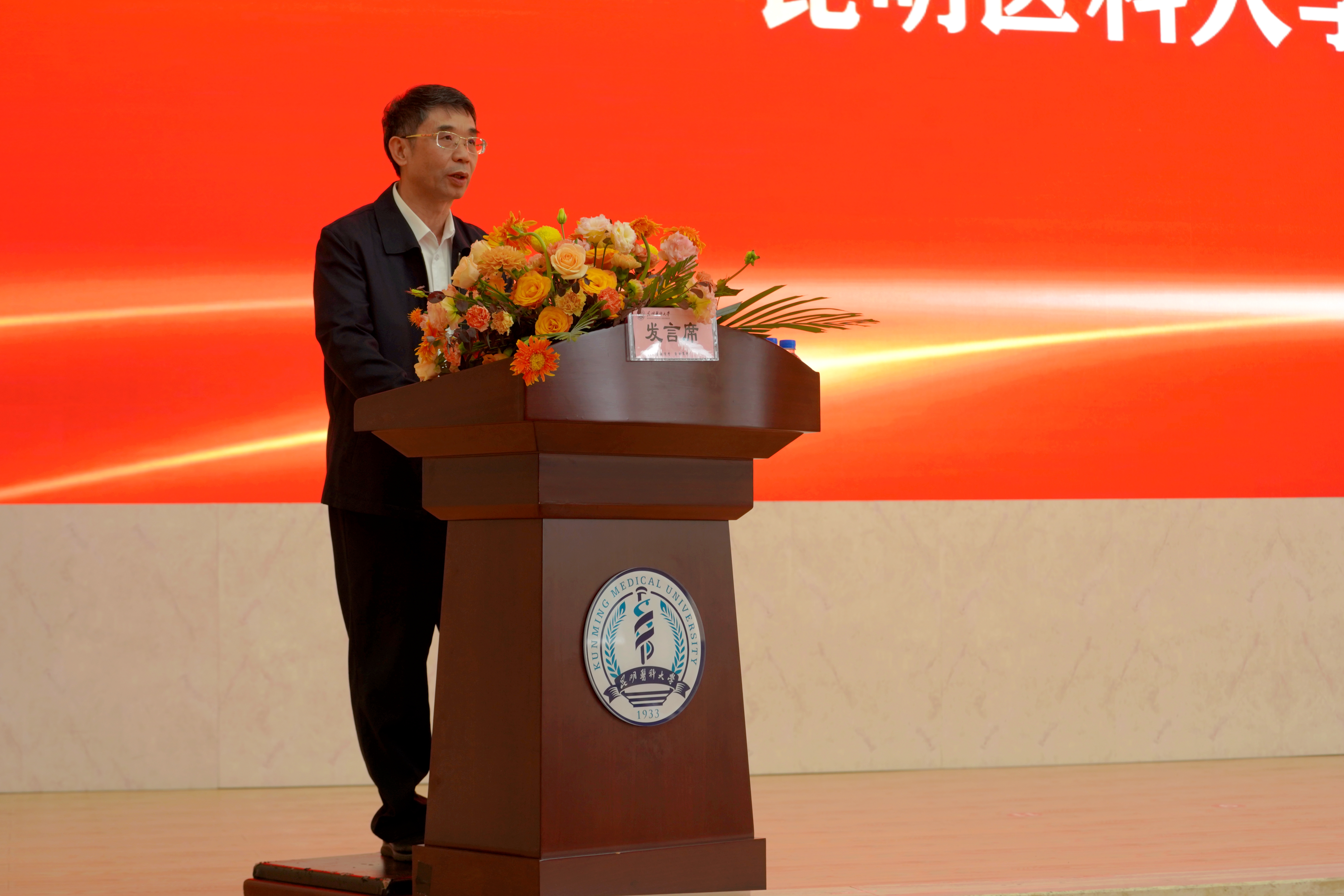 学校党委书记尹向阳在活动上讲话,他代表学校向全体教医护职工致以节日祝福,向受到表彰的先进集体和个人表示祝贺。他向广大教师提出了5点希望:一是希望广大教师坚定理想信念,践行初心使命,传承教育家精神,站稳国家立场,担当国家责任,做信仰坚定的传道之师。二是希望广大教师积极履职担当,发扬主人翁精神,立足岗位,积极投身高水平开放型医科大学建设,做推动学校高质量发展的有为之师。三是希望广大教师涵养道德情操,传承高尚品格,坚持立德树人,以德立身、以德立学、以德施教,努力成为“经师”和“人师”相统一的“大先生”,做行为世范的品行之师。四是希望广大教师丰富扎实学识,坚持终身学习,力行严谨治学,做业务精湛的学问之师。五是希望广大教师勤修仁爱之心,躬身诠释奉献,把教书育人作为“仁而爱人”的事业,做潜心育人的仁爱之师。