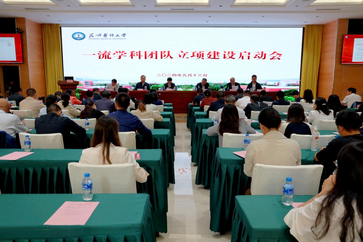 9月13日,昆明医科大学一流学科团队立项建设启动会在呈贡校区召开。学校党委书记尹向阳,校长夏雪山,党委常委、第一附属医院党委书记周佳,副校长解保生,党委常委、副校长殷建忠、陆地,相关职能部门主要负责人,各学院和直属附属医院党政主要负责人,首批立项建设的学科团队负责人参加会议。
