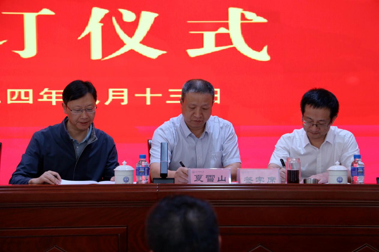 周佳和基础医学院党委书记杨正洲代表项目主要依托单位、第三附属医院教授姚宏和公共卫生学院教授肖媛媛代表立项建设团队负责人作表态发言。各获立项建设优势学科团队负责人代表、特色学科团队负责人代表、培育学科团队负责人代表分别与学校及依托单位签署三方共建任务书。