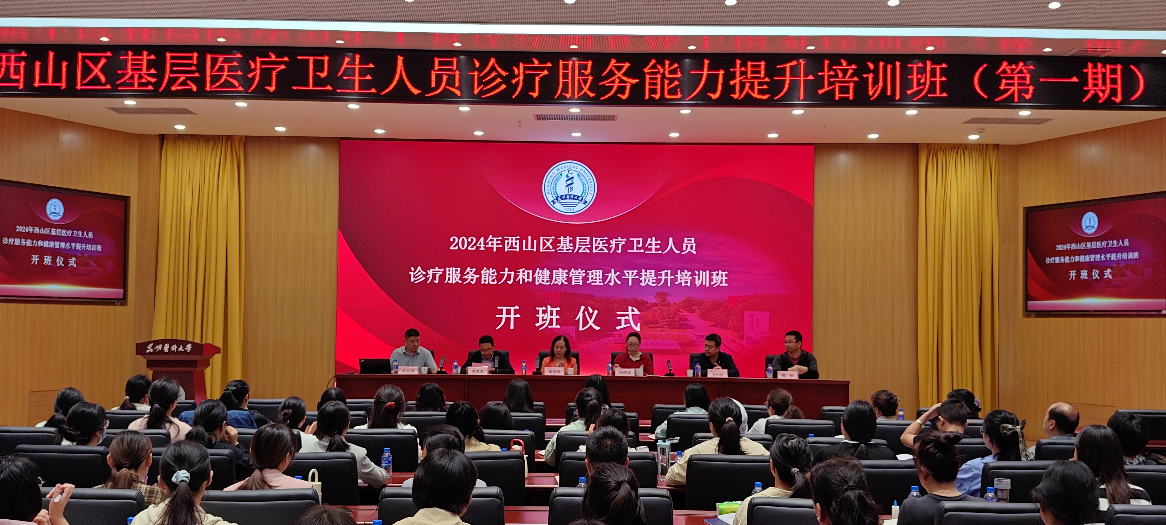 2024年9月23日,由昆明医科大学承办的西山区基层医疗卫生人员诊疗服务能力和健康管理水平提升培训班(第一期)在学校呈贡校区顺利开班,学校副校长张洪波,西山区卫生健康局、西山区人民医院、学校继续教育学院相关负责人出席开班仪式,来自西山区基层一线的社区卫生服务中心和社区卫生室共60名基层医疗卫生人员参加了本期培训。