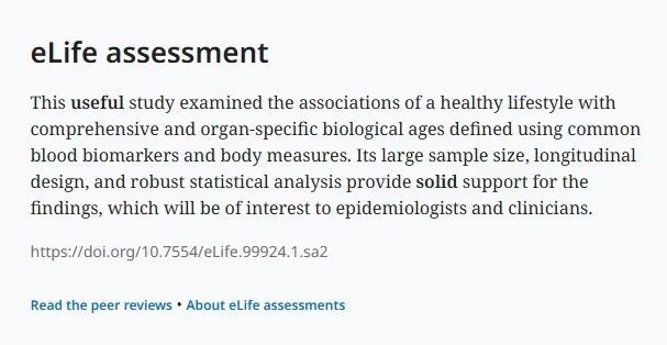 eLife评价:这项有用的研究调查了健康生活方式与使用常见的血液生物标志物和身体测量指标确定的全身和器官特异性生物年龄之间的关系。它的大样本量、纵向设计和可靠的统计分析为这些发现提供了坚实的支持,这将引起流行病学家和临床医生的兴趣。