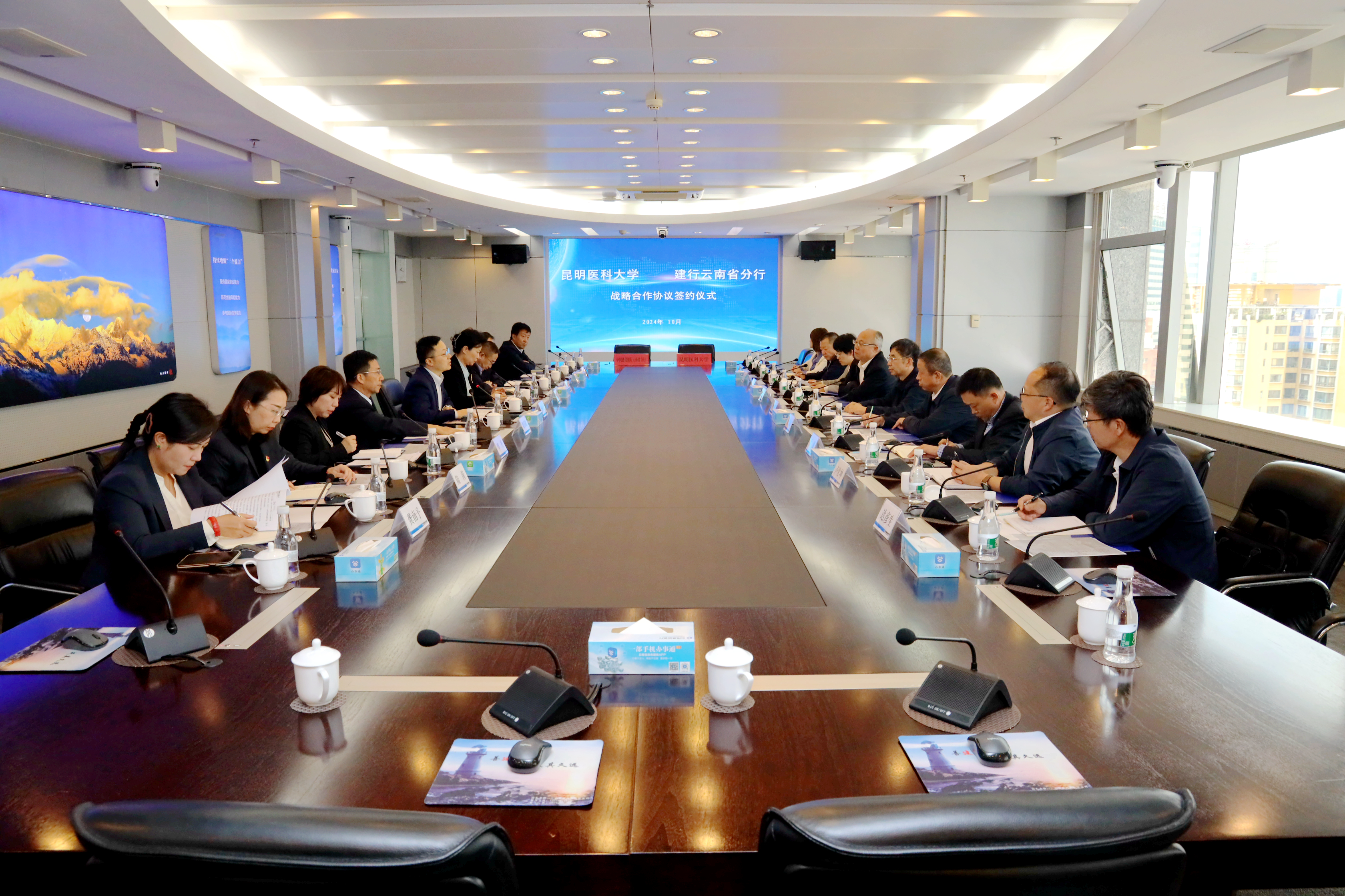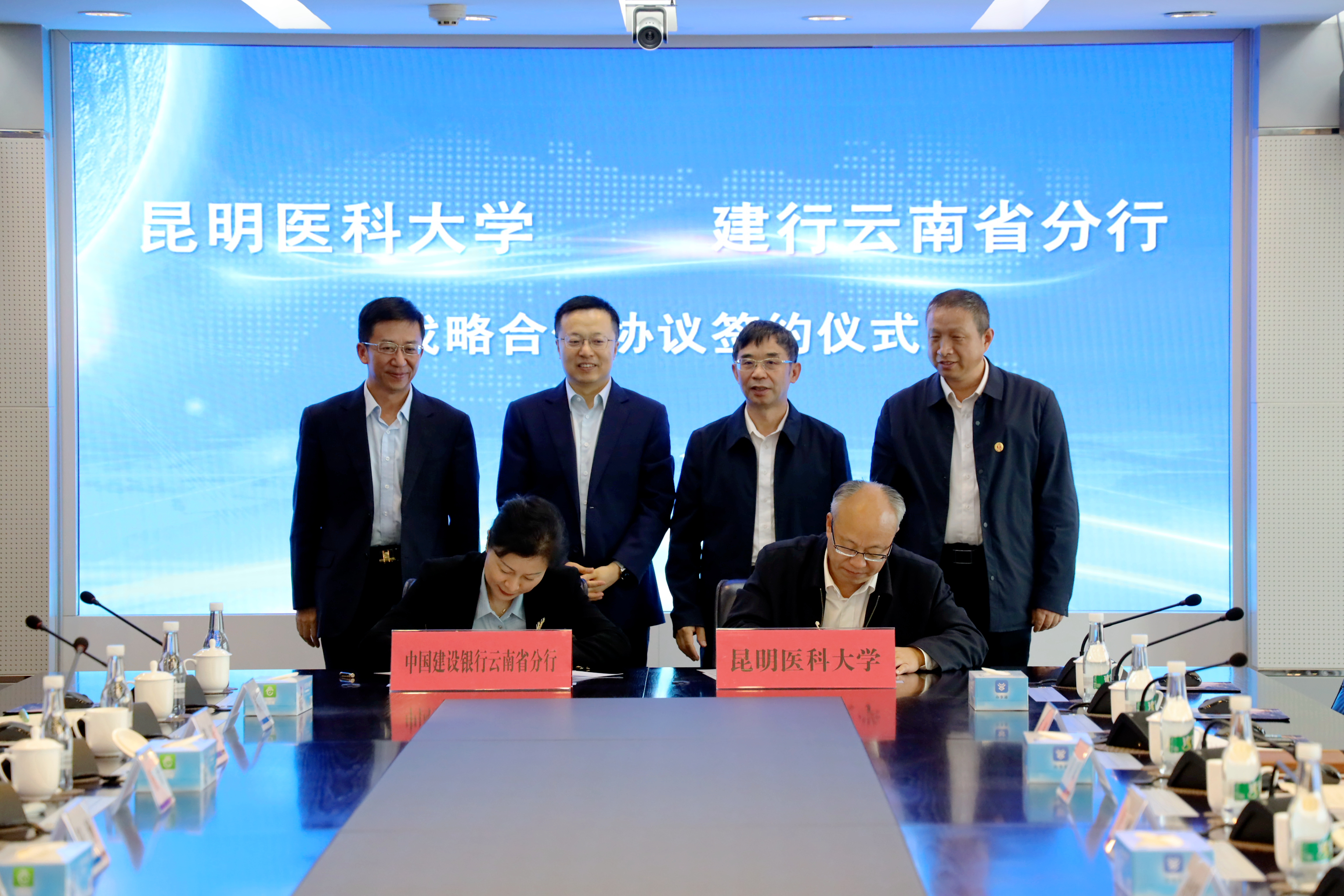 10月15日,昆明医科大学与中国建设银行云南省分行战略合作协议签约仪式在昆明举行。昆明医科大学党委书记尹向阳、校长夏雪山,党委常委、副校长吴红明;中国建设银行云南省分行党委书记、行长杨中仑,党委委员、副行长马晓芫,资深副经理、网络金融部总经理潘春雄以及双方有关部门负责人等参加签约仪式。