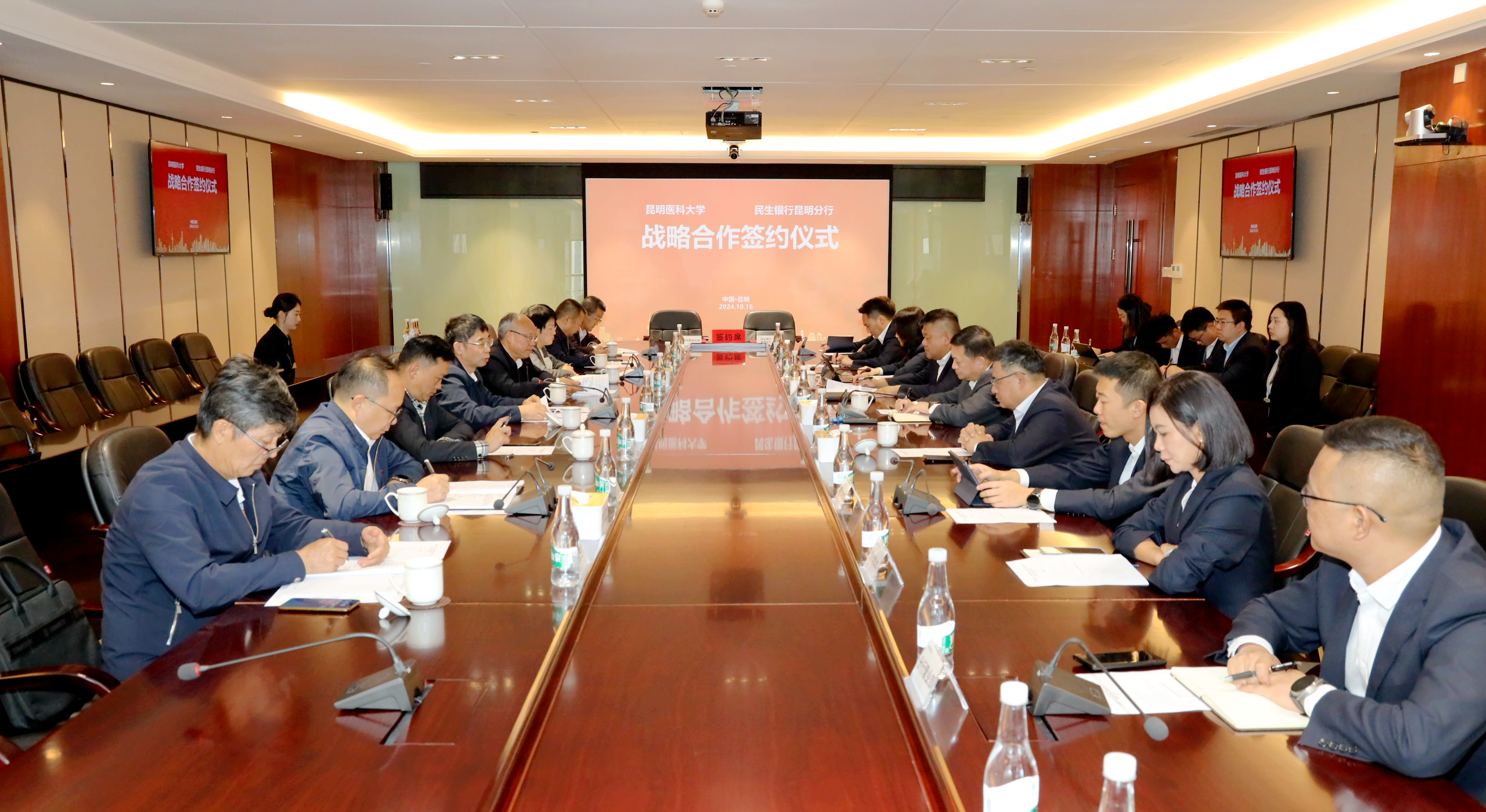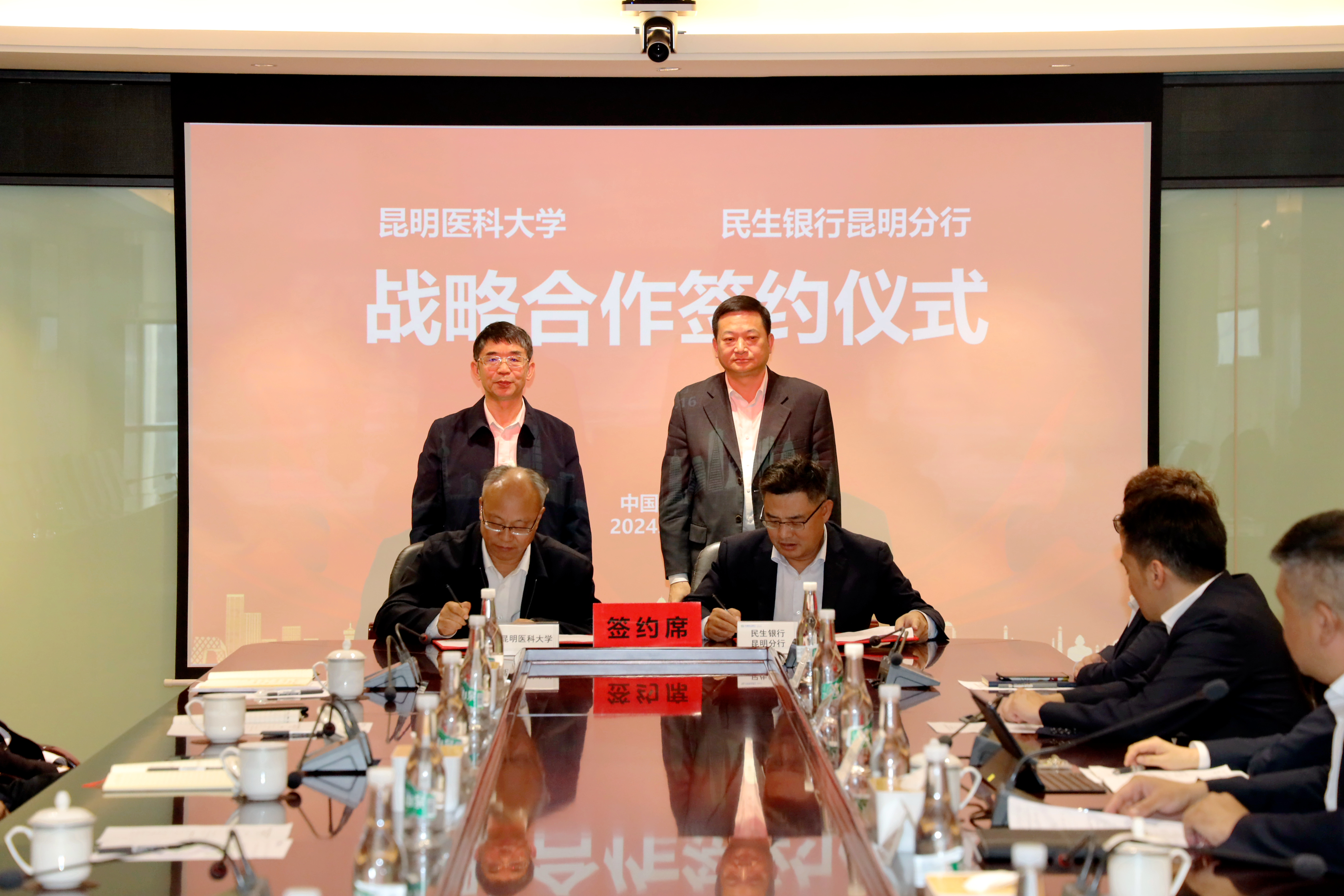 10月16日,昆明医科大学与中国民生银行昆明分行战略合作协议签约仪式在昆明举行。昆明医科大学党委书记尹向阳,党委常委、副校长吴红明;中国民生银行昆明分行党委书记、行长封期康,党委委员、副行长何伟,党委委员、行长助理王晓以及双方有关部门负责人等参加签约仪式。