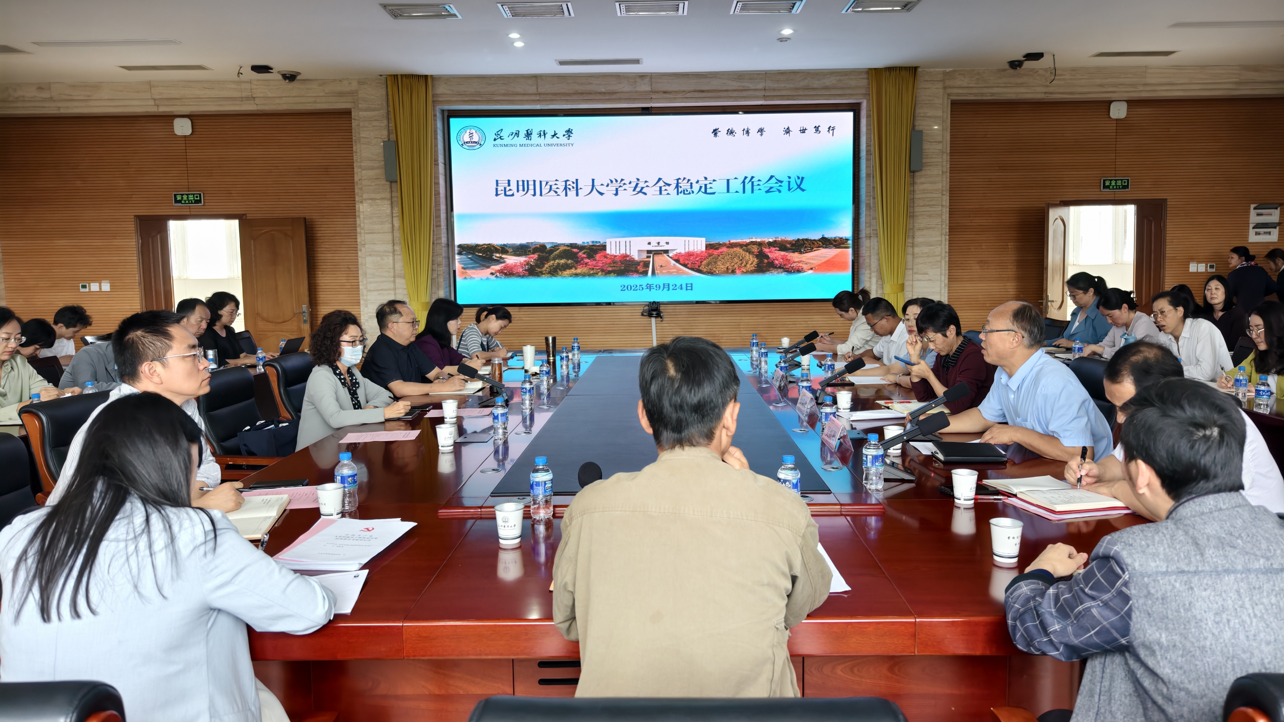 9月24日,昆明医科大学召开安全稳定工作会议,传达学习贯彻上级安全工作相关会议及文件精神,安排部署国庆、中秋假期和第四季度校园安全稳定工作。学校党委副书记徐绍琼,校党委常委、副校长吴红明、奚春睿出席会议,学校各部、处、室、学院、附属医院、中心分管安全工作的负责人和各学院辅导员参加会议。