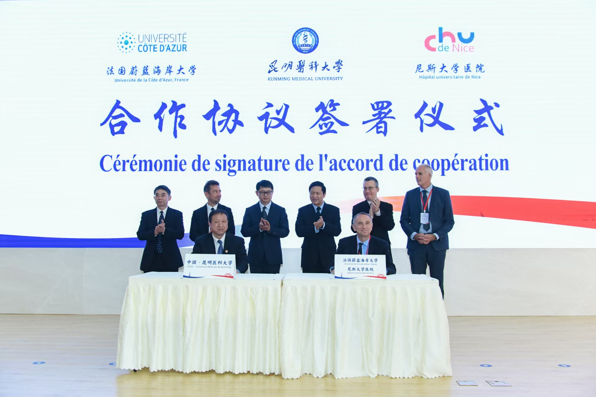 开幕式上,昆明医科大学校长夏雪山教授与法国尼斯大学医院、蔚蓝海岸大学签署了合作协议,双方将围绕科研创新与临床培训,为中法医学教育与医疗技术交流开辟更广阔的实践路径。