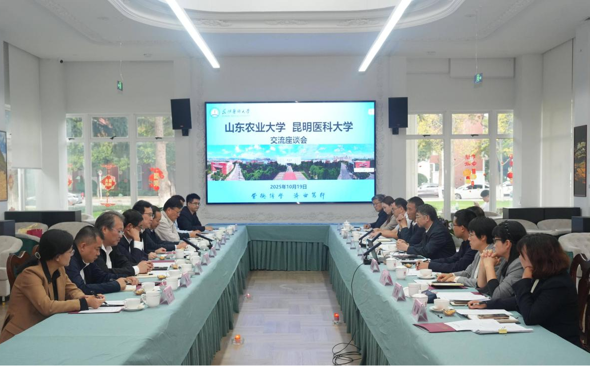 10月19日,山东农业大学党委书记徐剑波一行到昆明医科大学考察交流。昆明医科大学党委书记尹向阳,校长夏雪山,党委常委、副校长李利华出席会议,两校相关部门负责人参加座谈交流。双方围绕人才队伍建设、科技创新及“十五五”建设发展规划等领域深入交流。