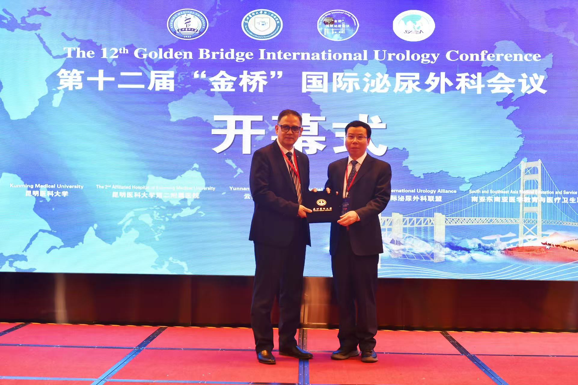 开幕式上,举行了昆明医科大学客座教授受聘仪式,何永文向尼泊尔泌尿外科医师协会主席马赫什·阿迪卡里教授颁发了昆明医科大学客座教授证书。