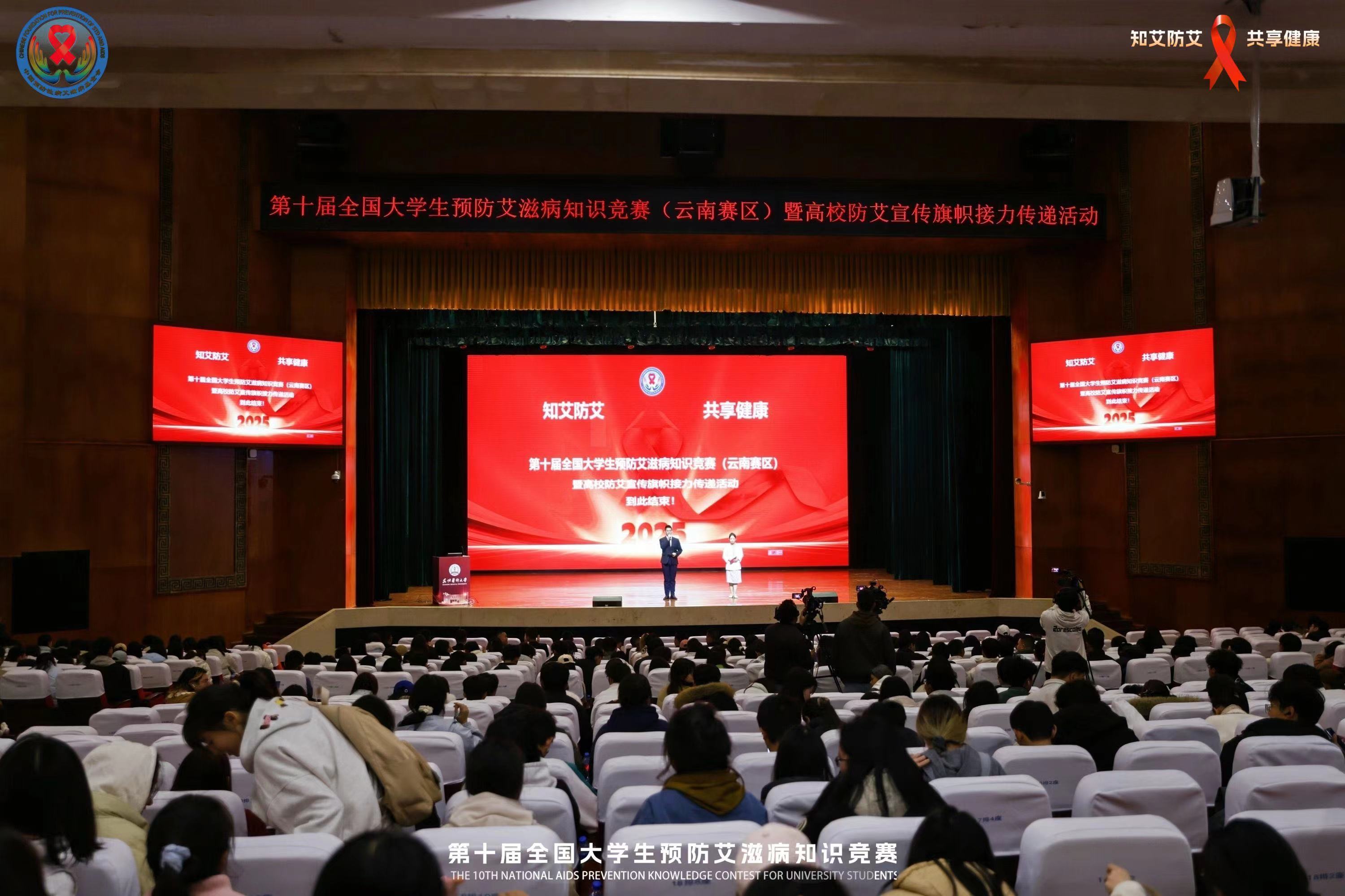 11月18日,第十届全国大学生预防艾滋病知识竞赛(云南赛区)暨高校防艾旗帜接力传递活动启动仪式在昆明医科大学举办。昆明医科大学党委书记尹向阳,中国预防性病艾滋病基金会理事长孙新华,云南省禁毒委员会办公室常务副主任、云南省公安厅禁毒总队总队长黄碧忠,云南省疾病预防控制局(云南省防治艾滋病局)局长宋志忠、云南省教育厅体卫艺处处长龙微出席活动。来自全省20所高校师生代表,云南省交通运输厅、云南省财政厅、云南省疾病预防控制中心、云南省人口和卫生健康宣教中心、云南省传染病医院等单位领导及负责同志1000余人参加活动。