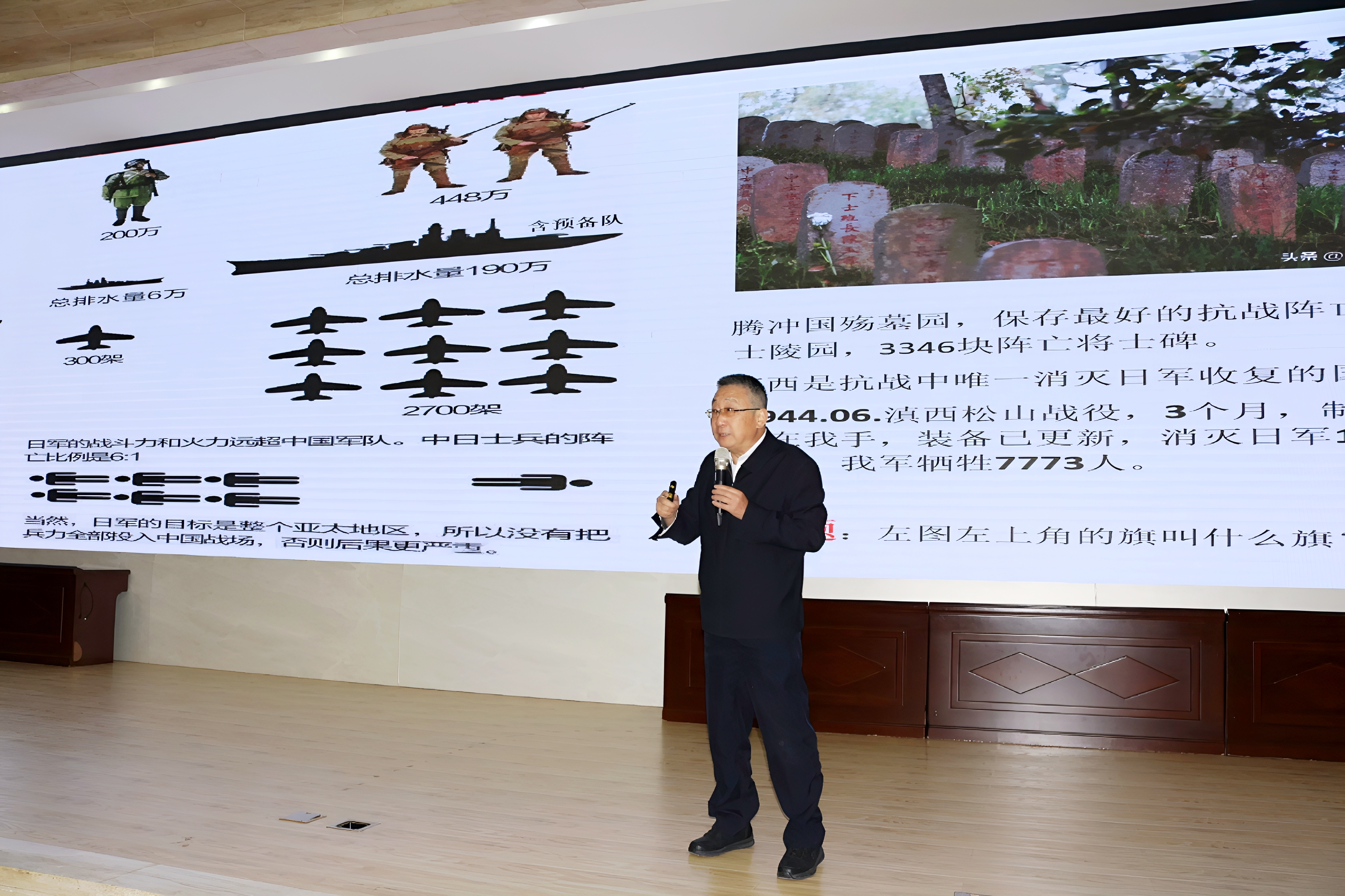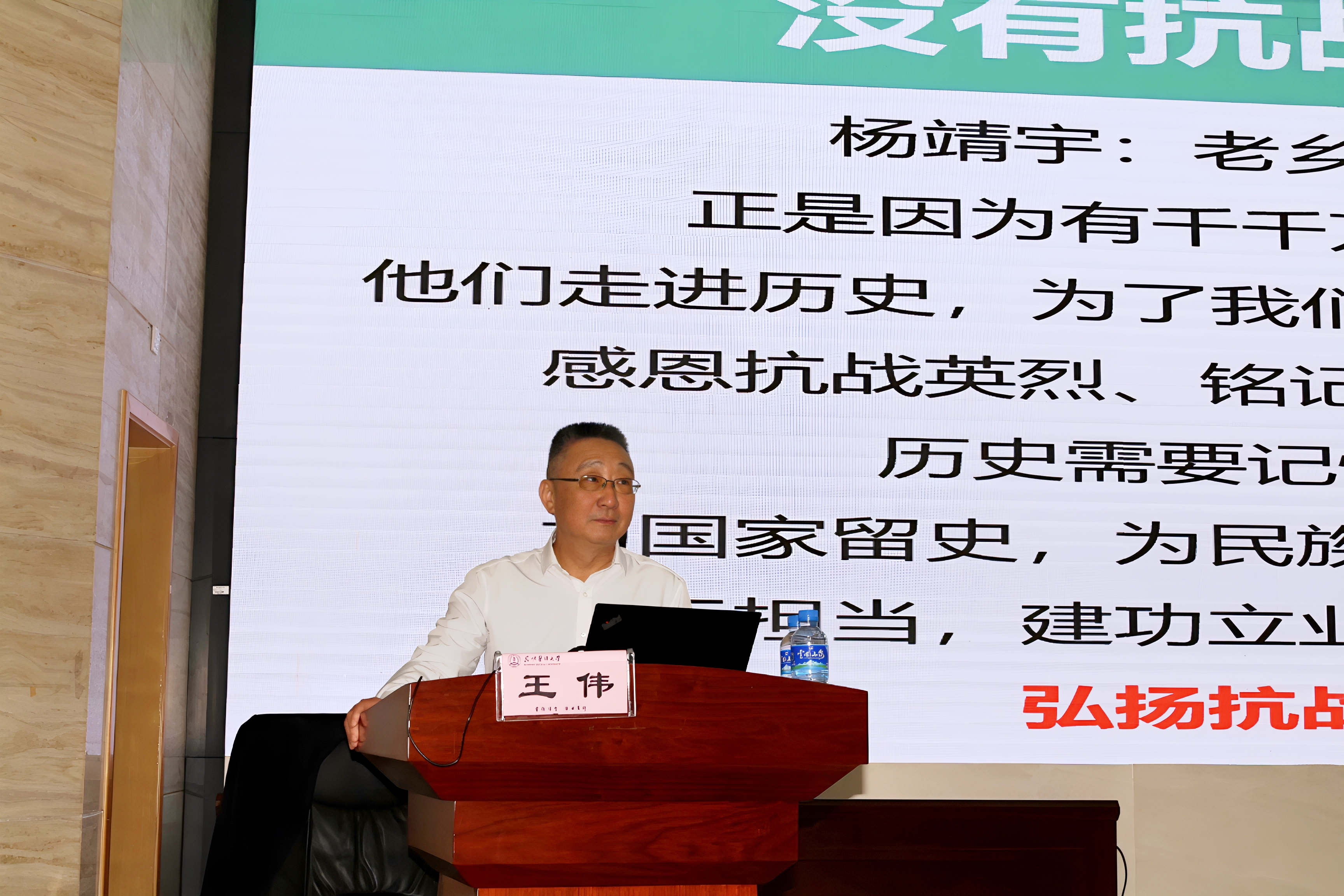 王伟分析了抗日战争初期中日双方国力和军事的巨大差距,并围绕九一八事变、“七七事变”、淞沪会战等重要历史节点对抗日战争全过程进行了解读。讲述中,王伟通过抗战英雄英勇就义的故事,生动诠释了无数英烈用鲜血铸就的天下兴亡、匹夫有责的爱国情怀,视死如归、宁死不屈的民族气节,不畏强暴、血战到底的英雄气概,百折不挠、坚忍不拔的必胜信念。