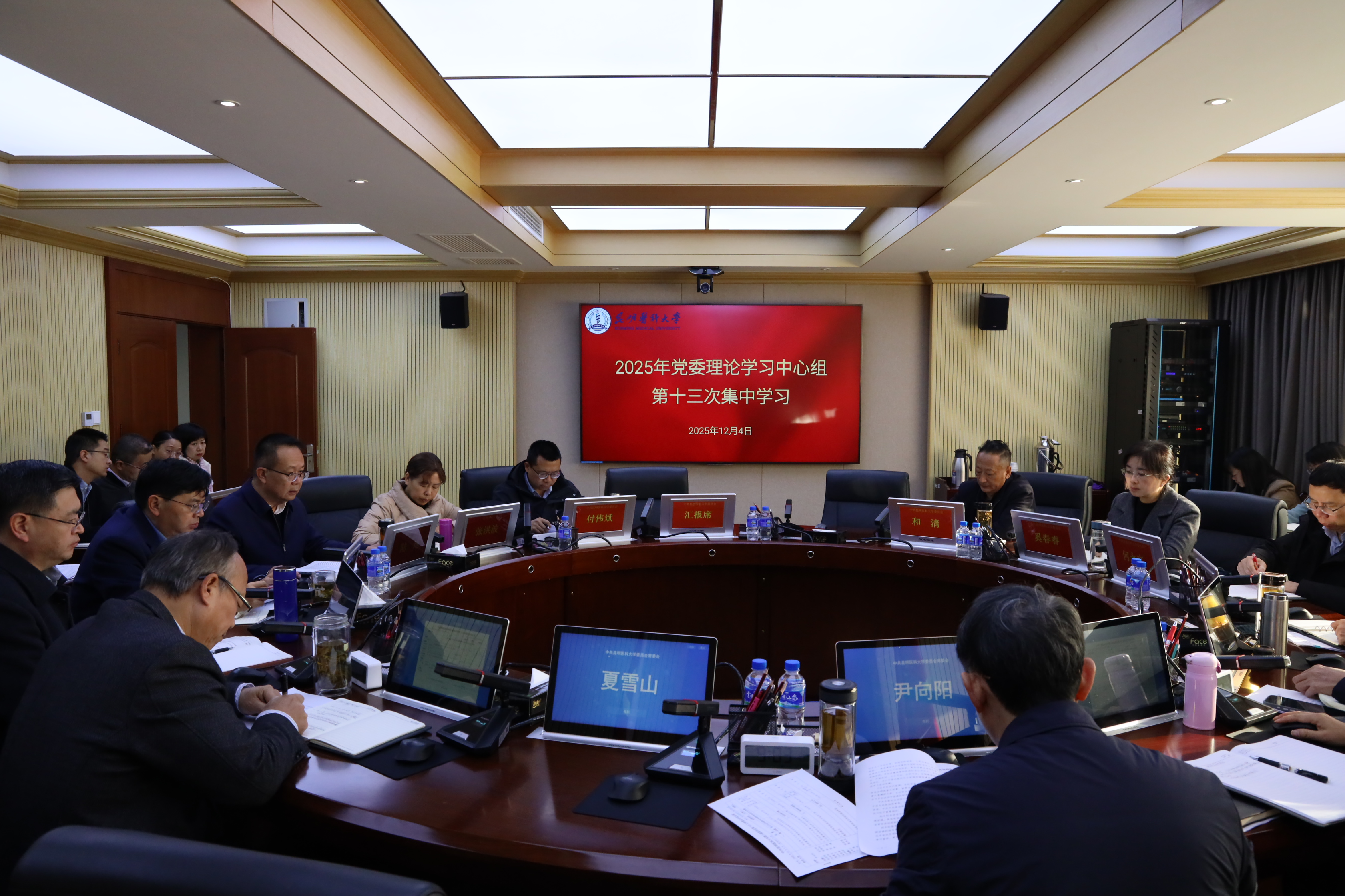 12月4日,昆明医科大学党委理论学习中心组举行2025年第十三次集中学习,专题学习习近平法治思想,认真领会中央全面依法治国工作会议精神,围绕贯彻落实党的二十届四中全会战略部署,全面推进学校治理体系和治理能力现代化。