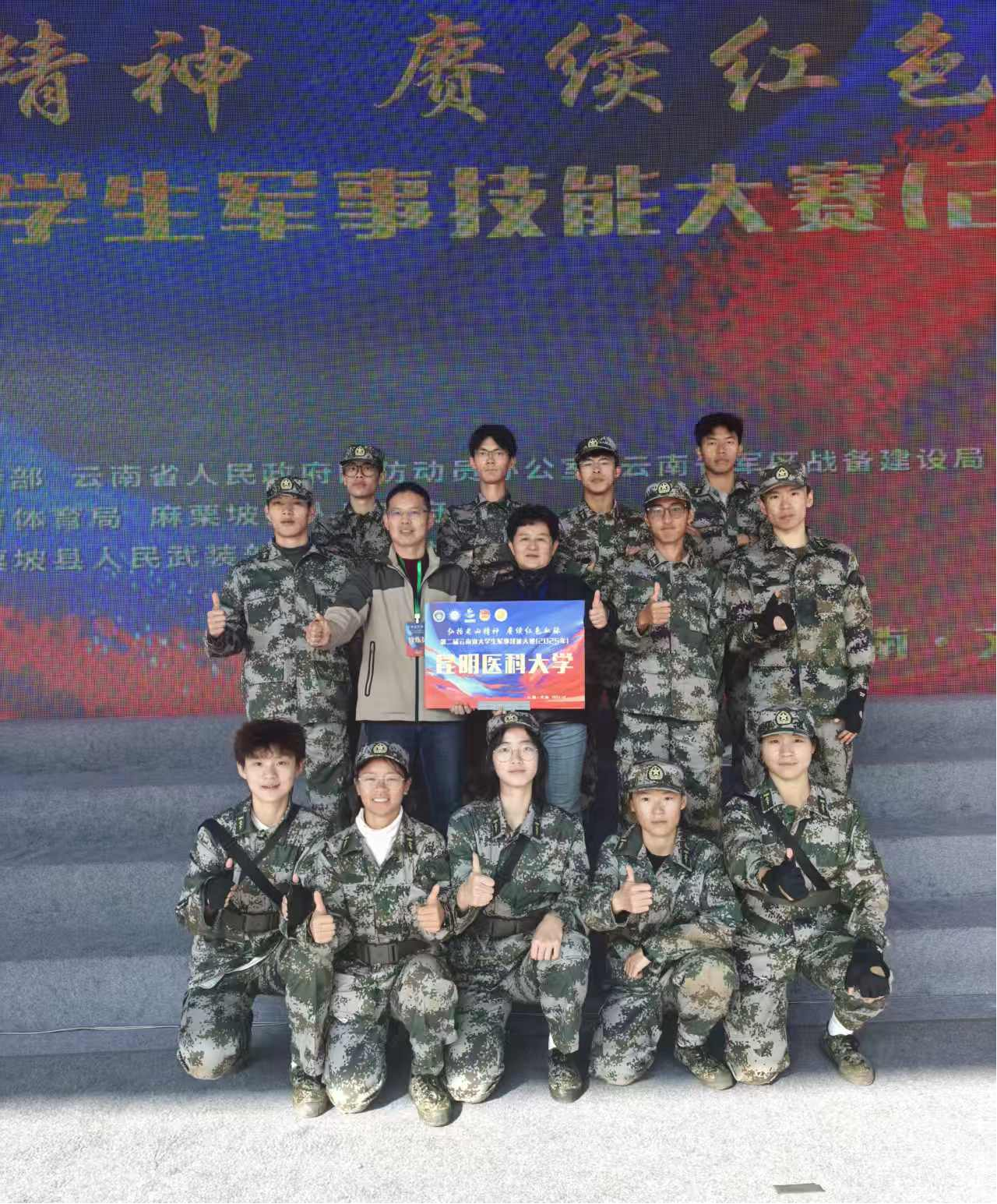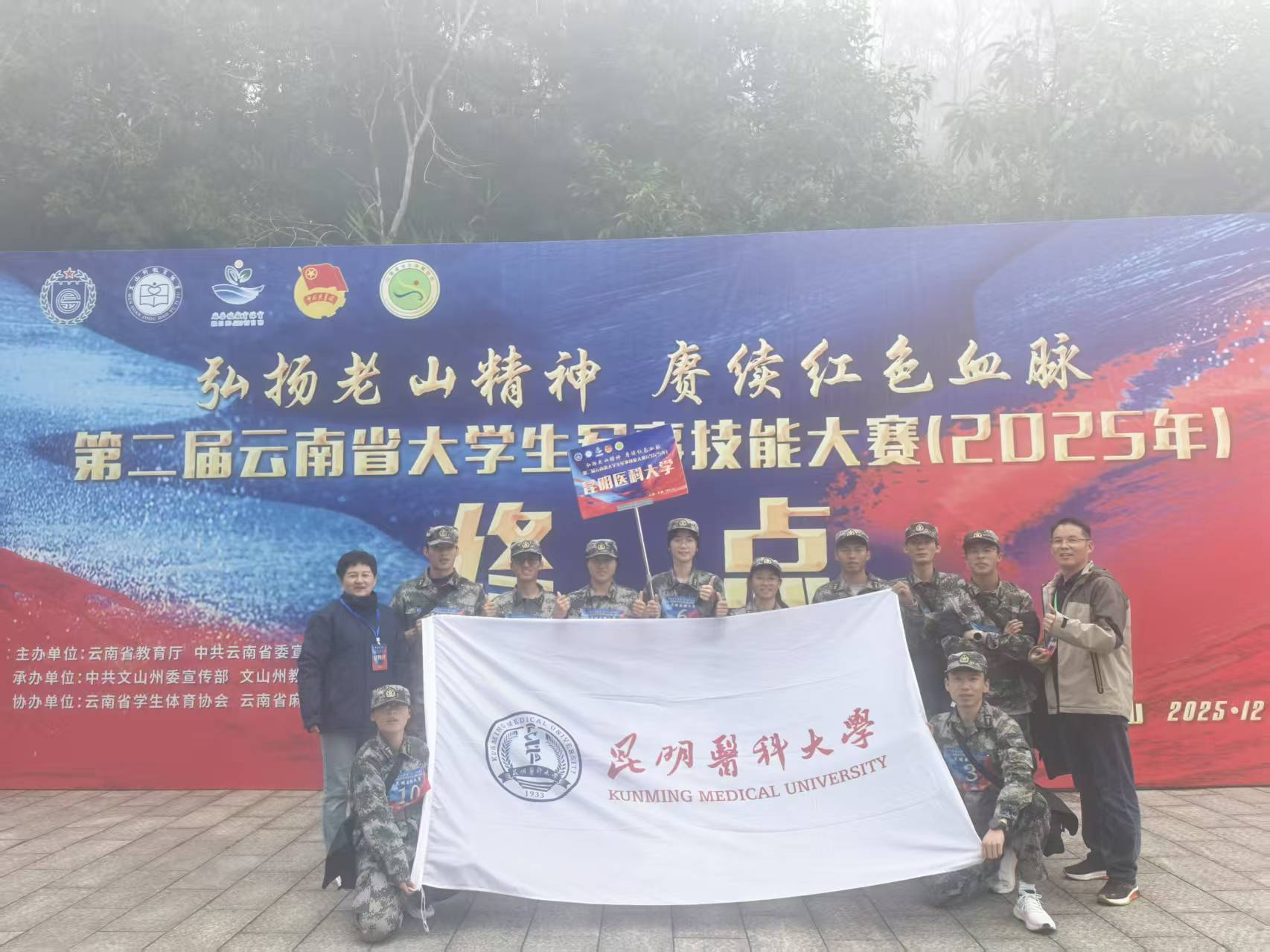 12月9日至13日,第二届云南省大学生军事技能大赛在文山州麻栗坡县举行,来自全省78所高校的1157名选手参赛。经过激烈角逐,昆明医科大学参赛队以团体总分第一荣获大赛本科组一等奖,并在单项赛事中斩获射击一等奖、手榴弹投掷二等奖、单兵战术二等奖。据悉,自2024年云南省开展军事技能大赛以来,学校连续两年蝉联团体一等奖。