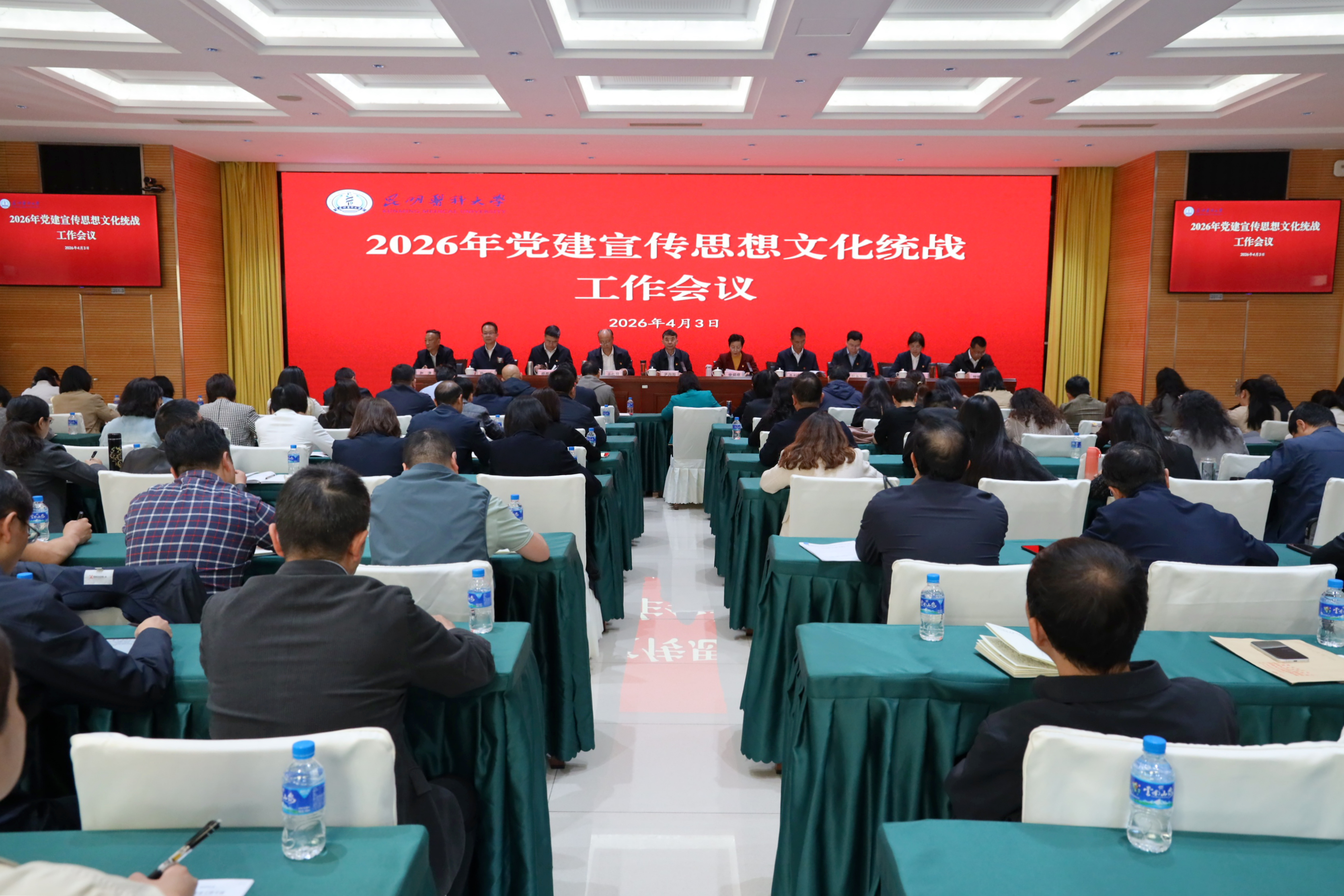 4月3日,昆明医科大学在呈贡校区召开2026年党建宣传思想文化统战工作会议,传达上级有关精神,总结回顾2025年学校党建、宣传思想文化、统战工作成效,分析形势任务,安排年度重点任务。